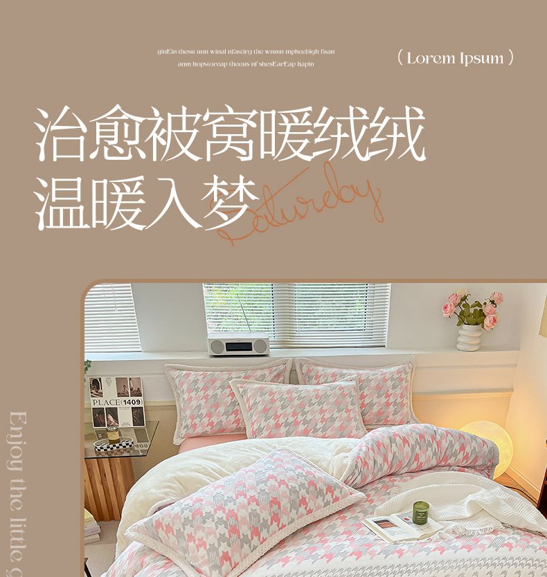 当前位置: 91家纺网 > 商品网购 > 床品套件 > 四件套 > 其它四件套 > 琪格格纺织 2025新款全消光包边立体简约清新雕花绒四件套 雕花包边-千鸟格小熊-粉