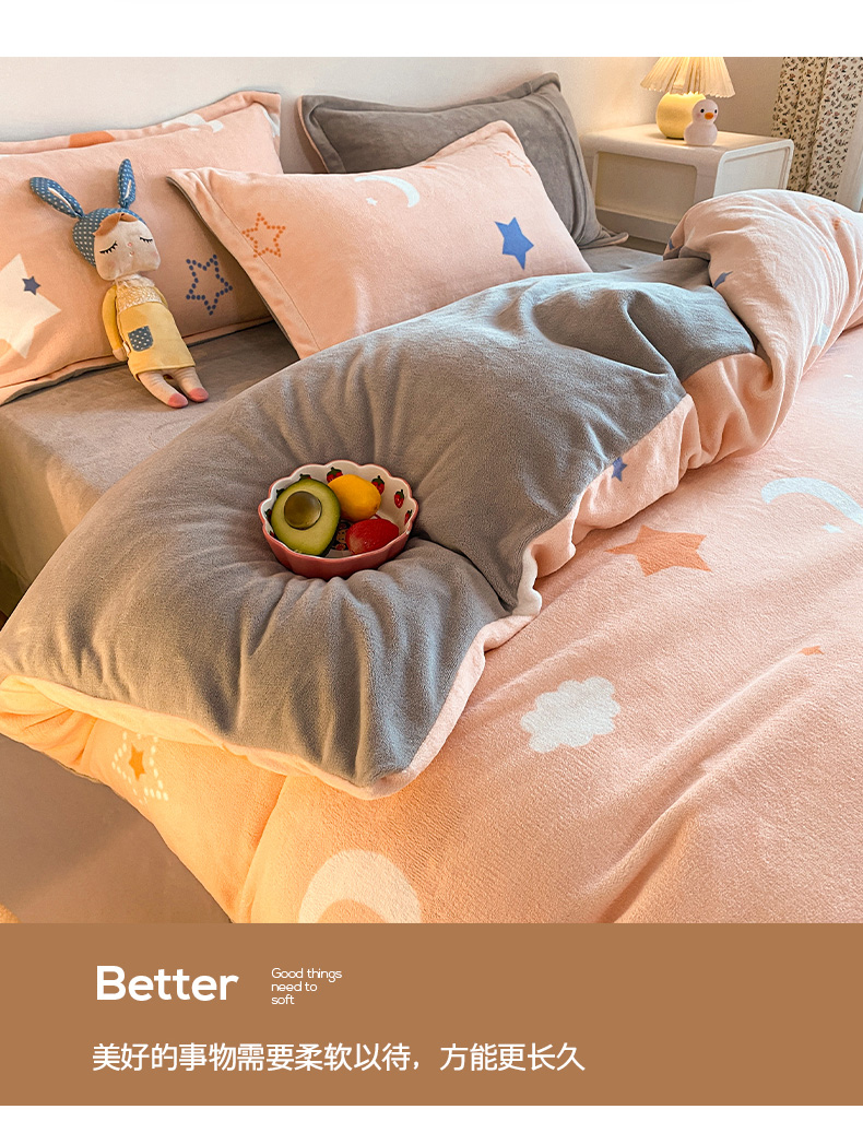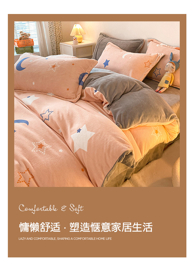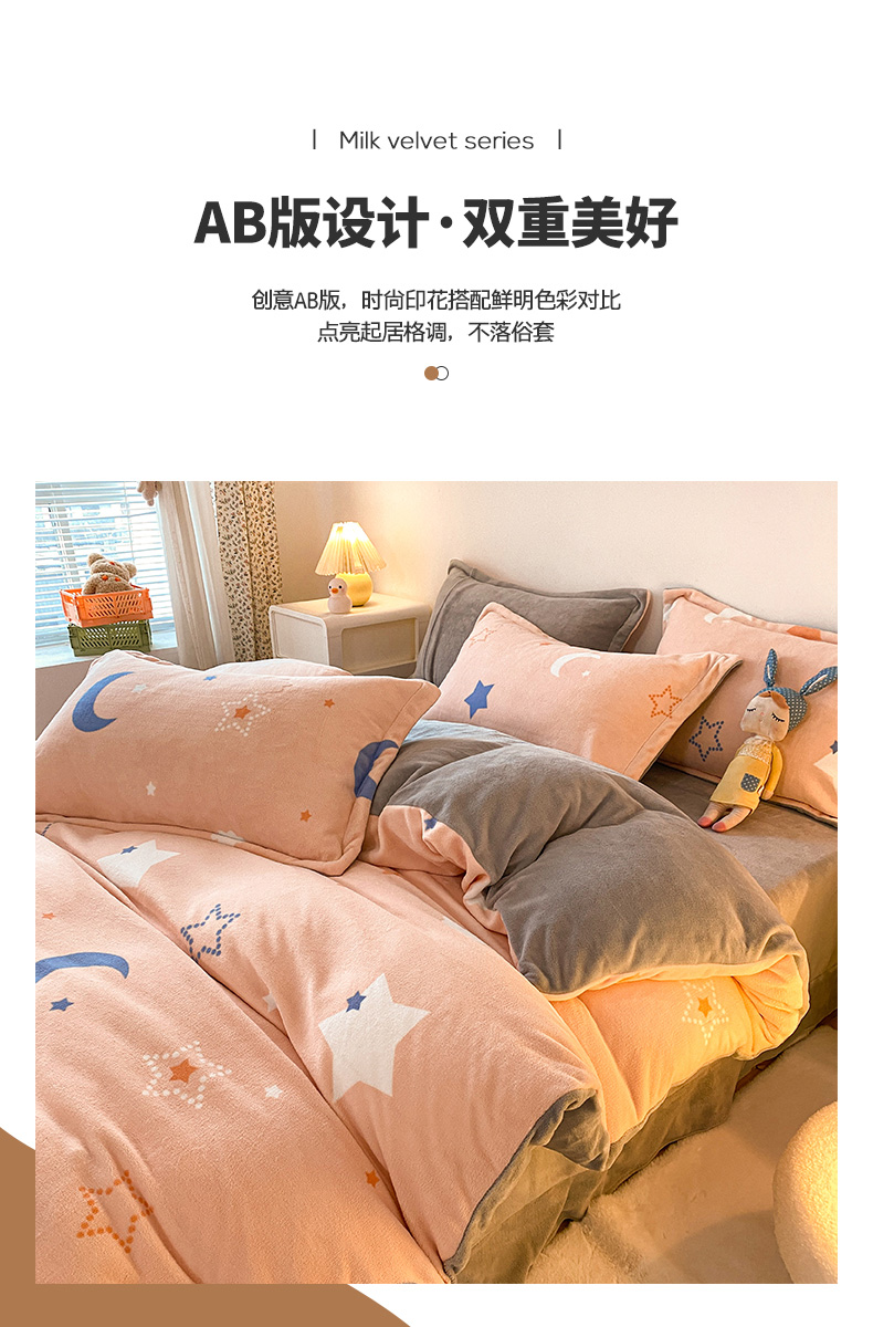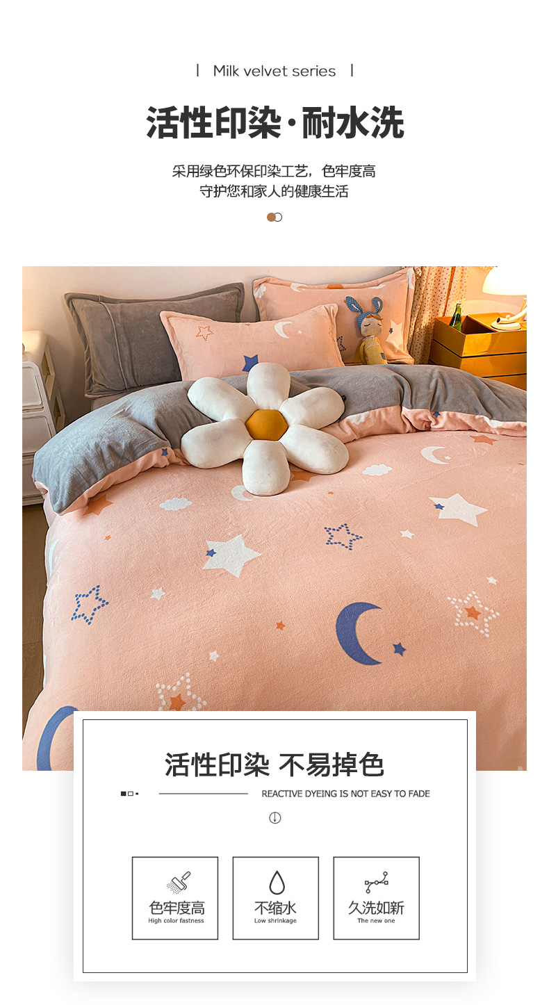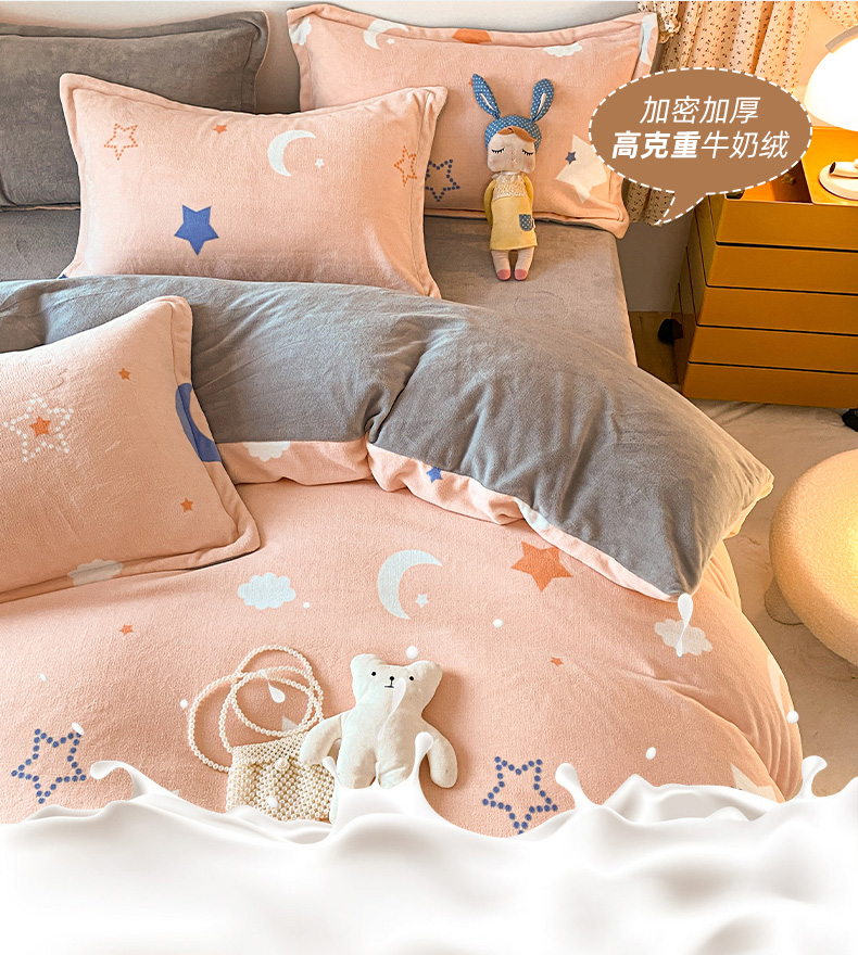 • 91家纺网 家纺一手货源 找家纺 金盛纺 2025新款高克重牛奶绒印花系列单被套(可定制) 梦幻星空(粉)