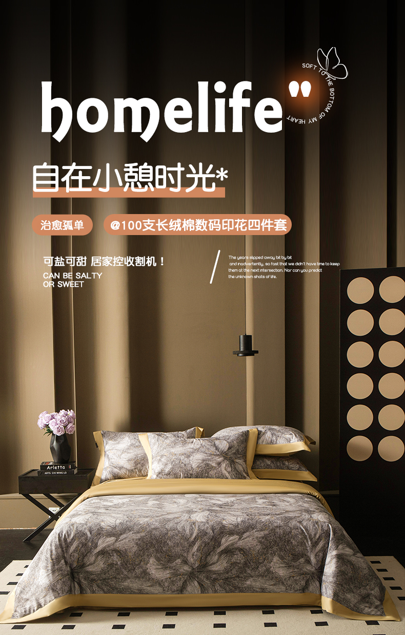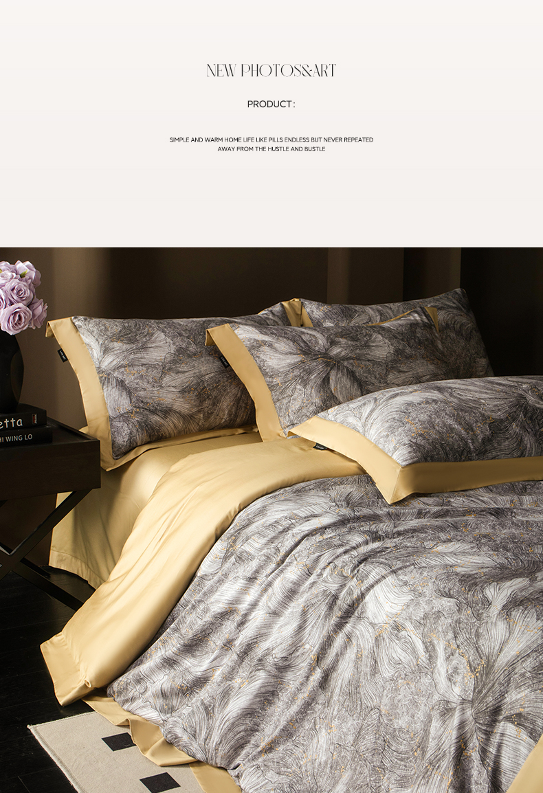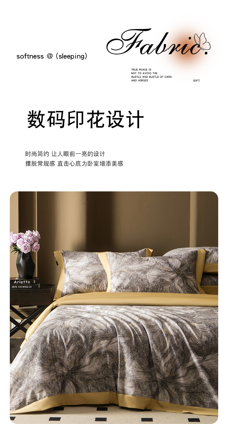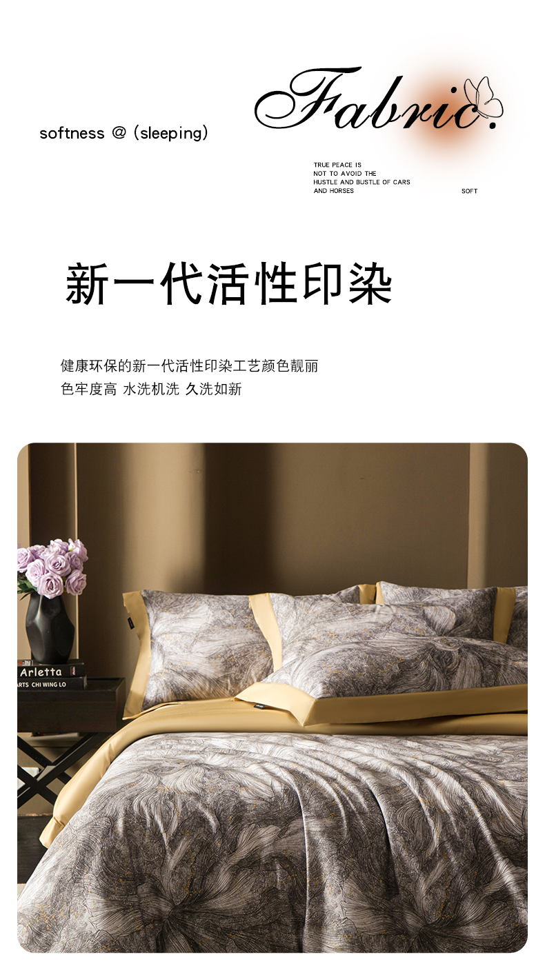(总)洺兰家居 2026年新疆长绒棉100支天丝棉高端工艺款床单床笠四件套床上用品,淡若清香,陌上花开,羽墨