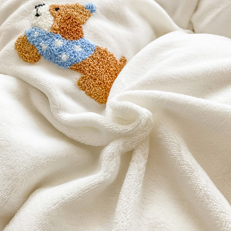 人人爱家纺 2025新款牛奶绒绣花四件套 幸运狗-浅蓝,幸运狗-浅蓝