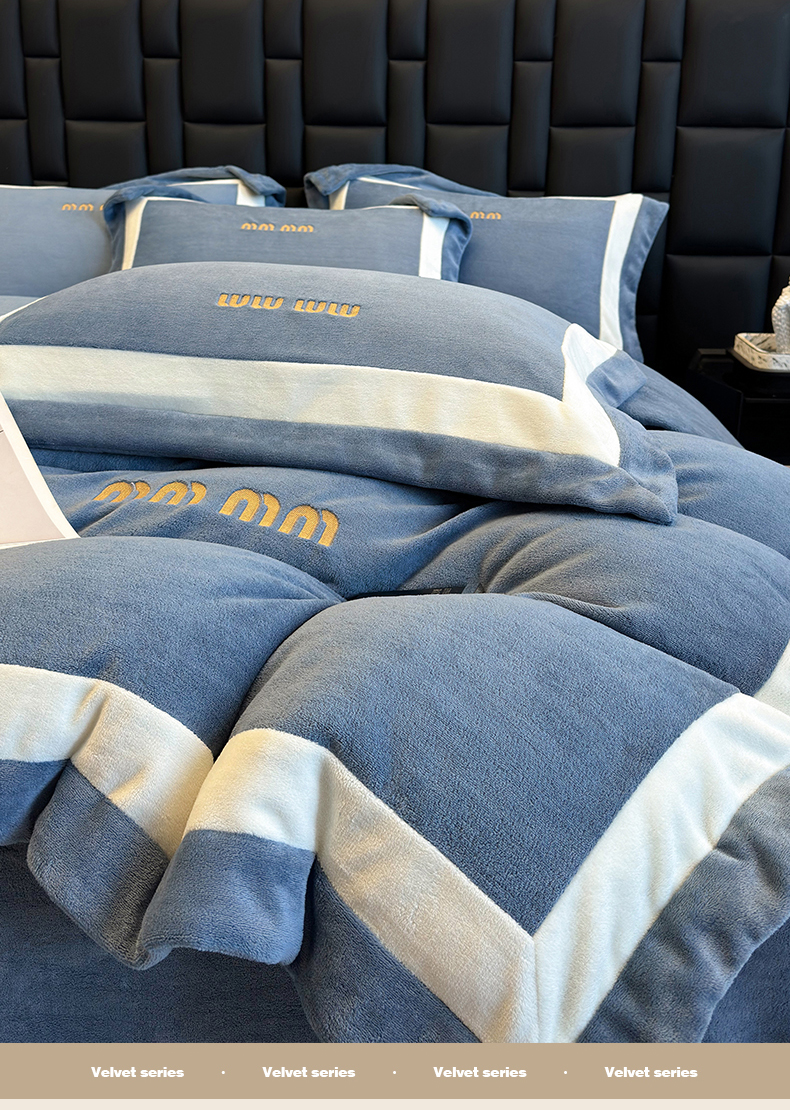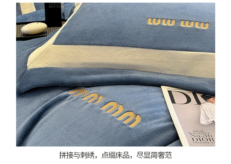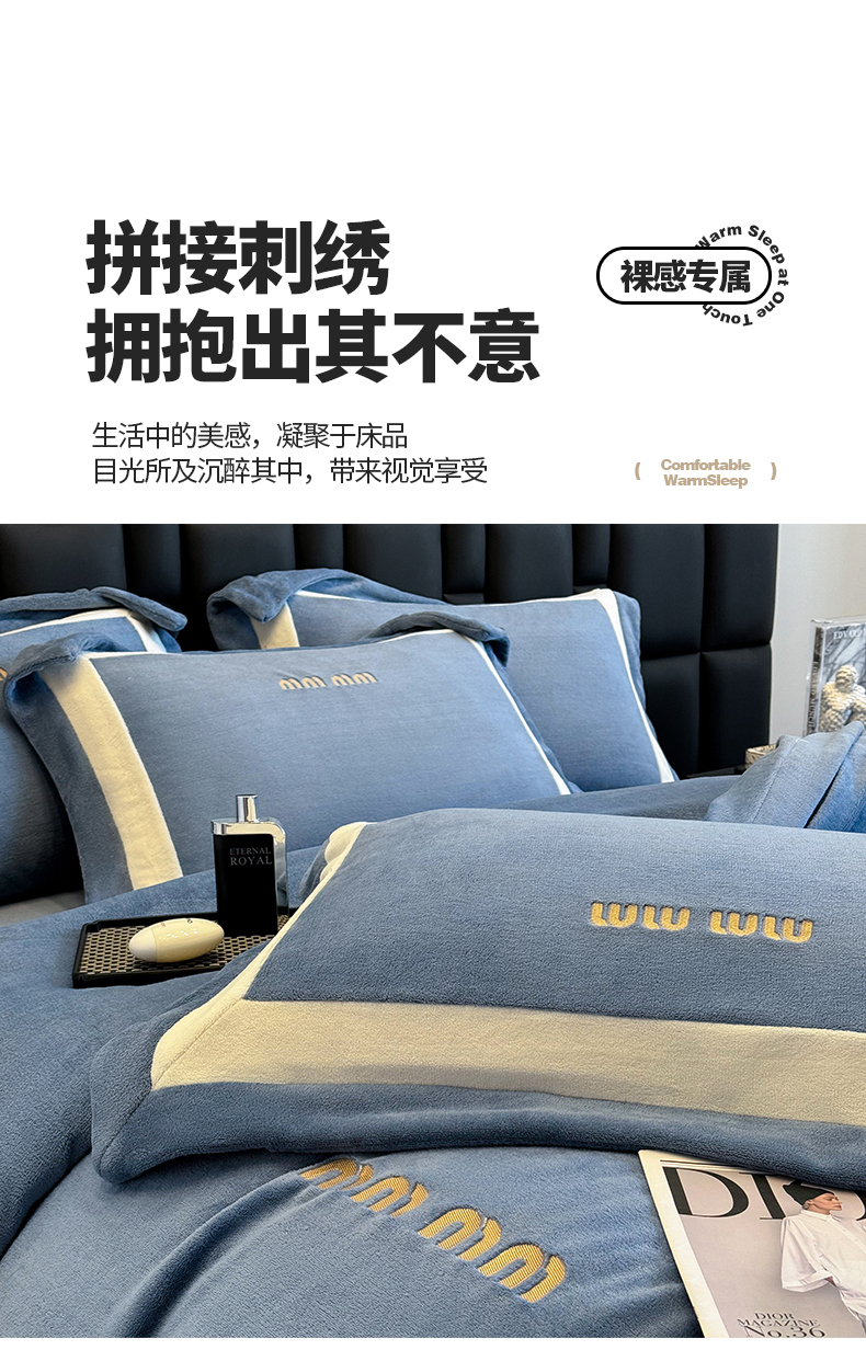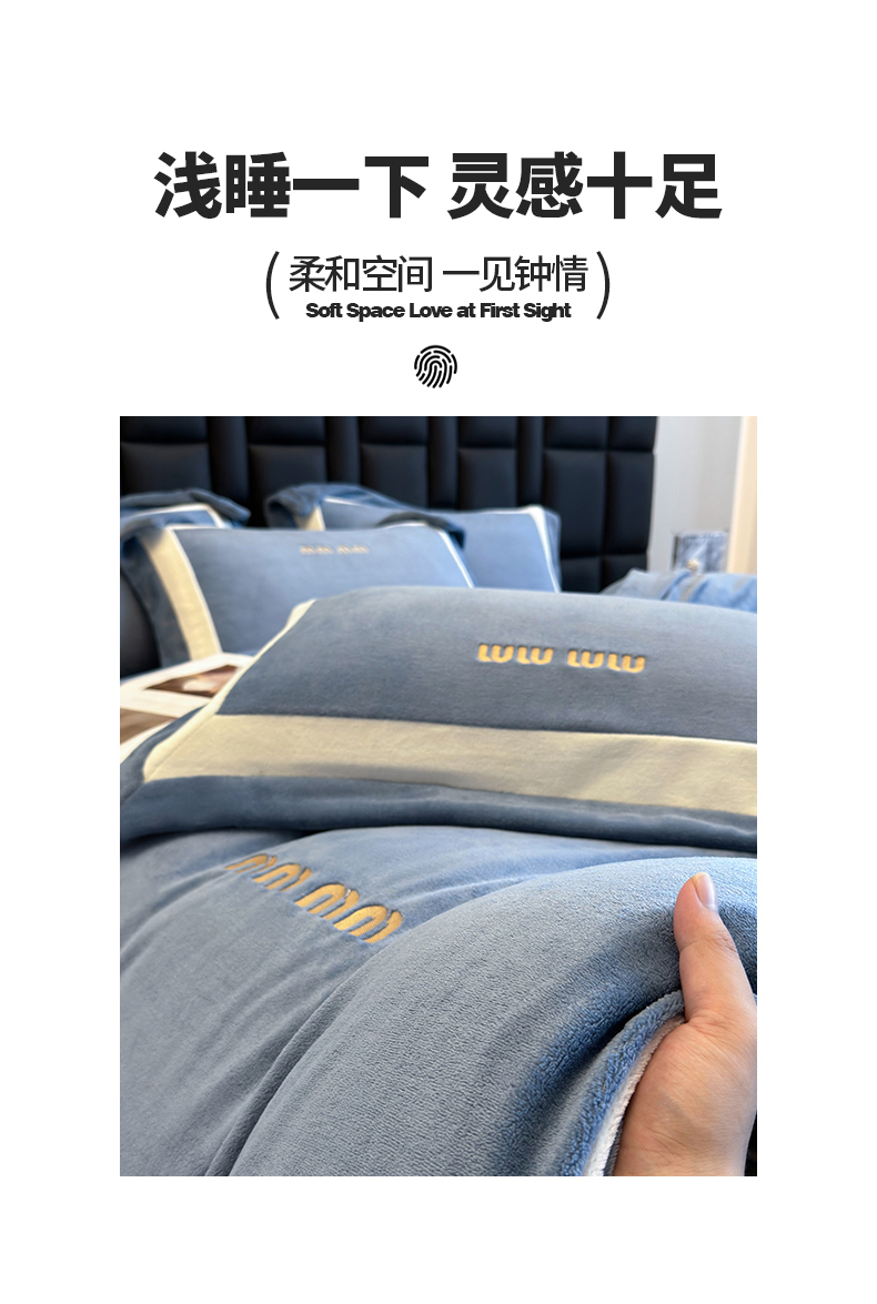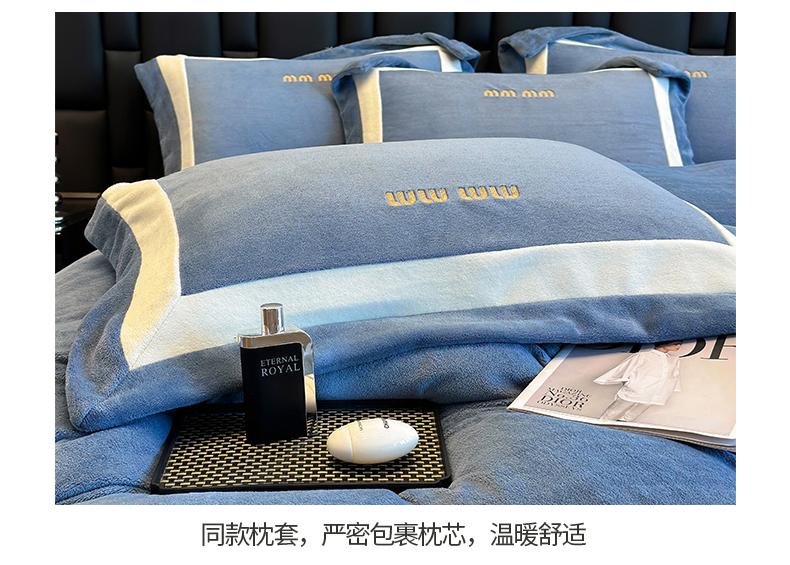 商品名称:懒猫家纺 2025新款轻奢拼接牛奶绒四件套-缪斯 缪斯-海珀蓝