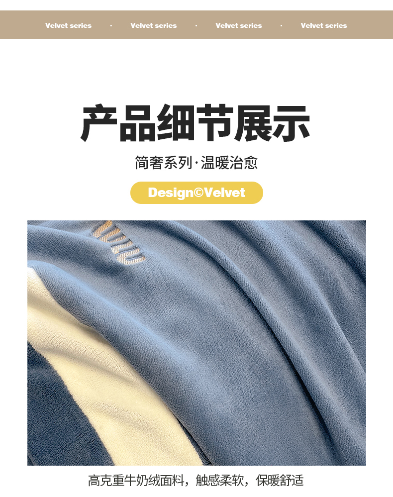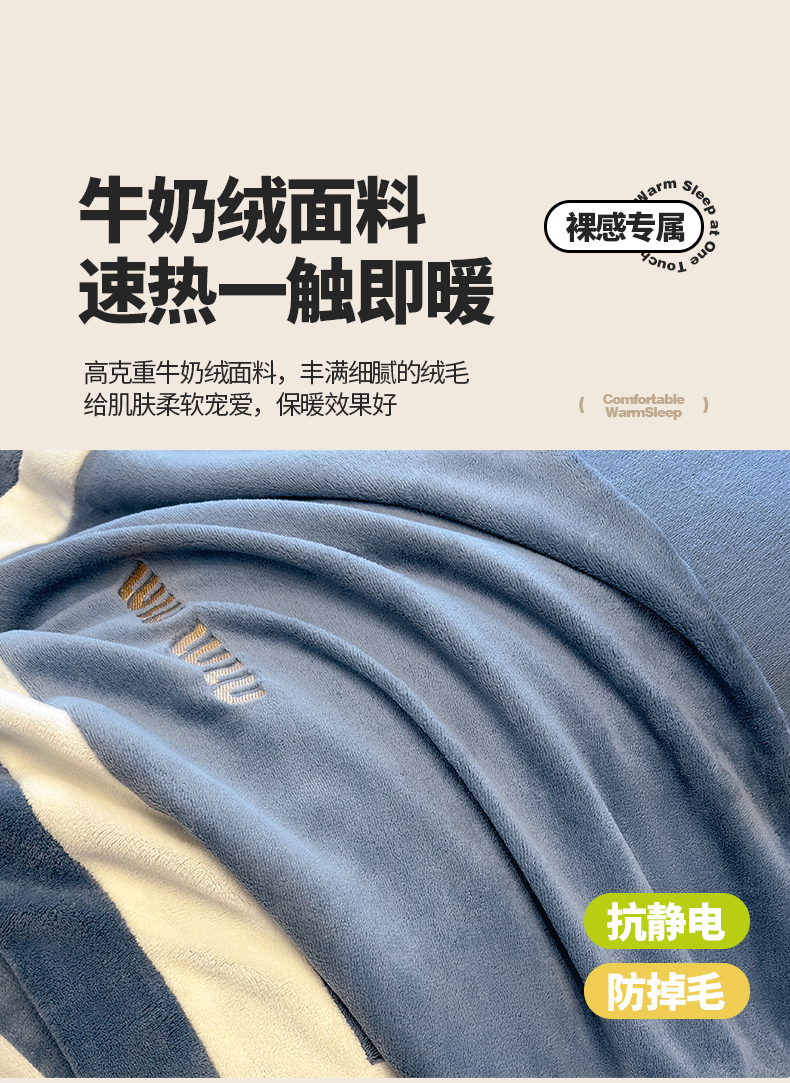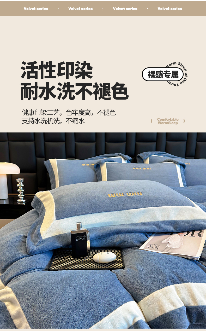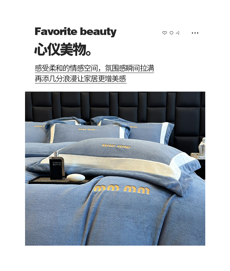 商品名称:懒猫家纺 2025新款轻奢拼接牛奶绒四件套-缪斯 缪斯-海珀蓝