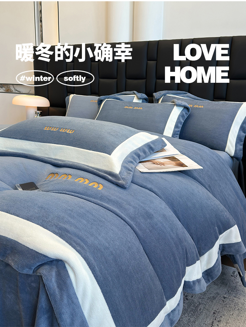 懒猫家纺 2025新款轻奢拼接牛奶绒四件套-缪斯 缪斯-海珀蓝