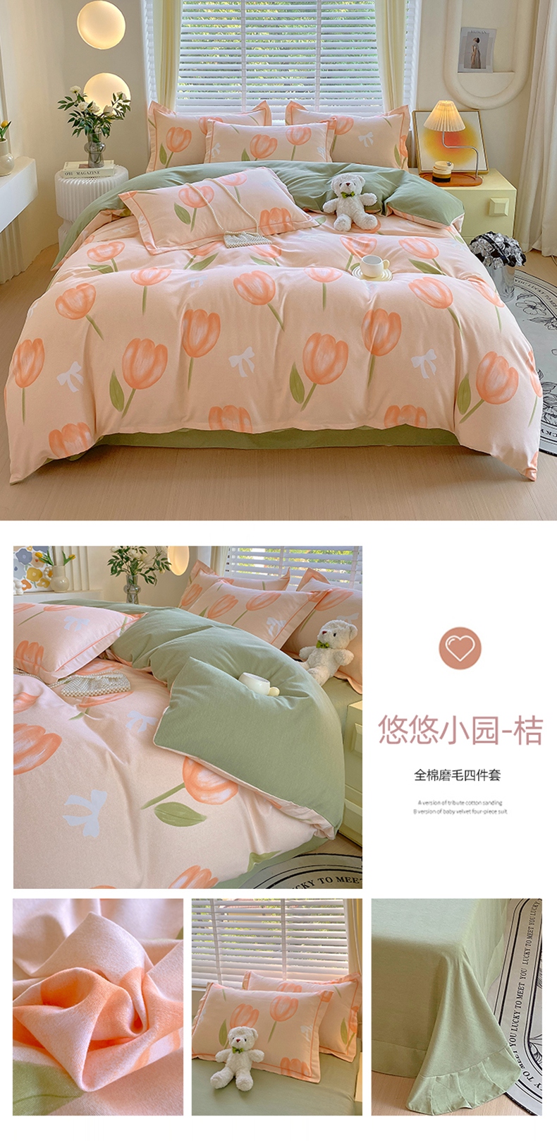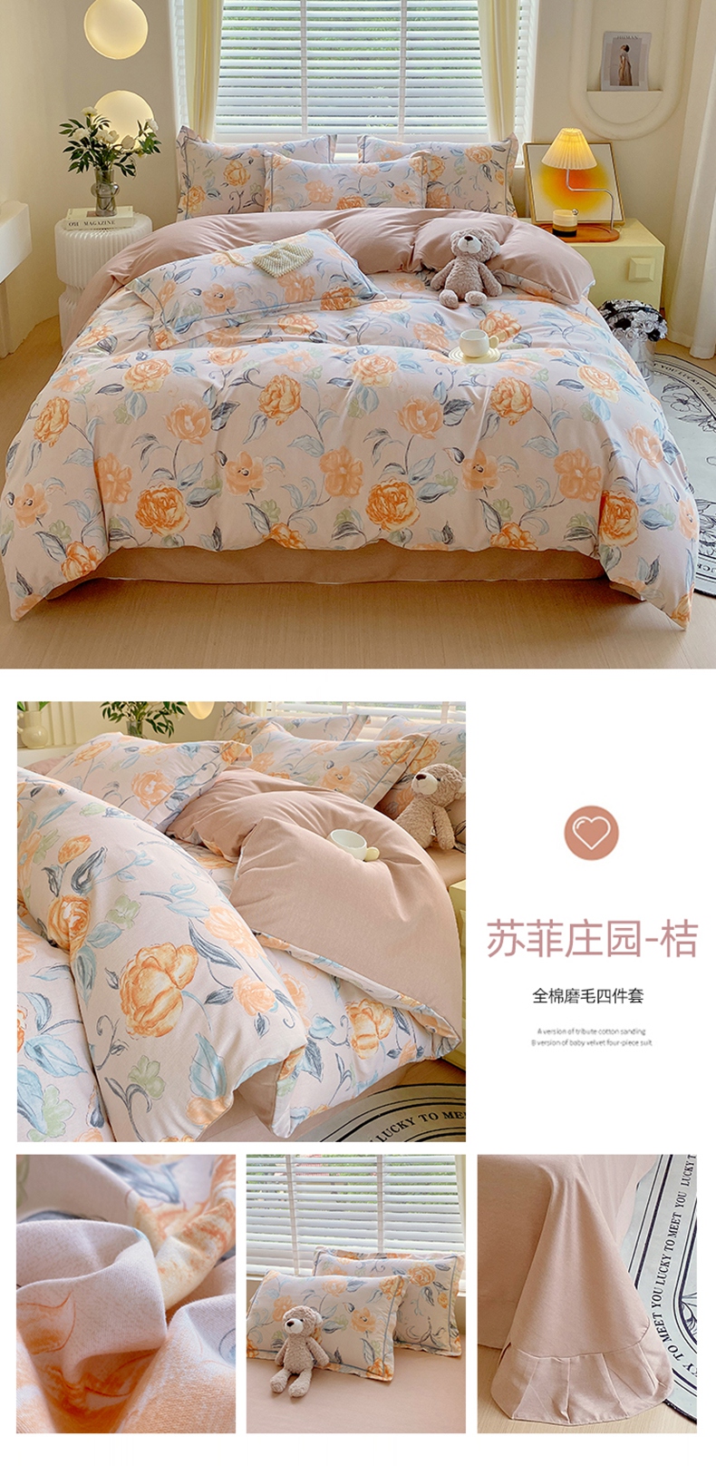 当前位置: 91家纺网 > 商品网购 > 床品套件 > 四件套 > 全棉普通四件套 > 威布斯家居 2025年9月更新全棉磨毛四件套 D花开曼舞-桔