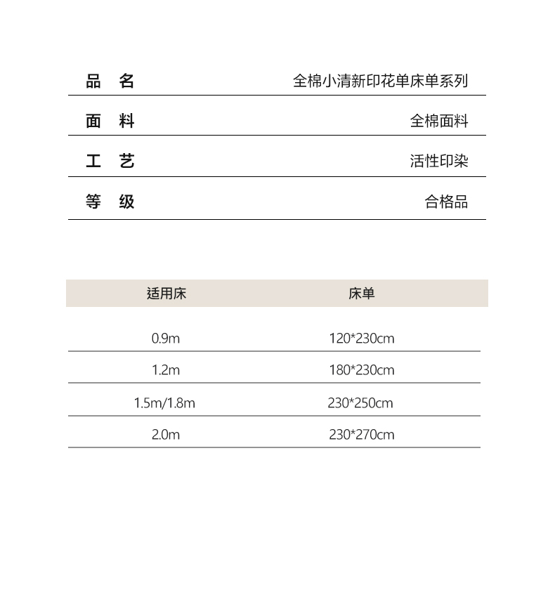 180*230cmcm单床单