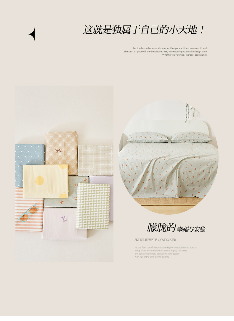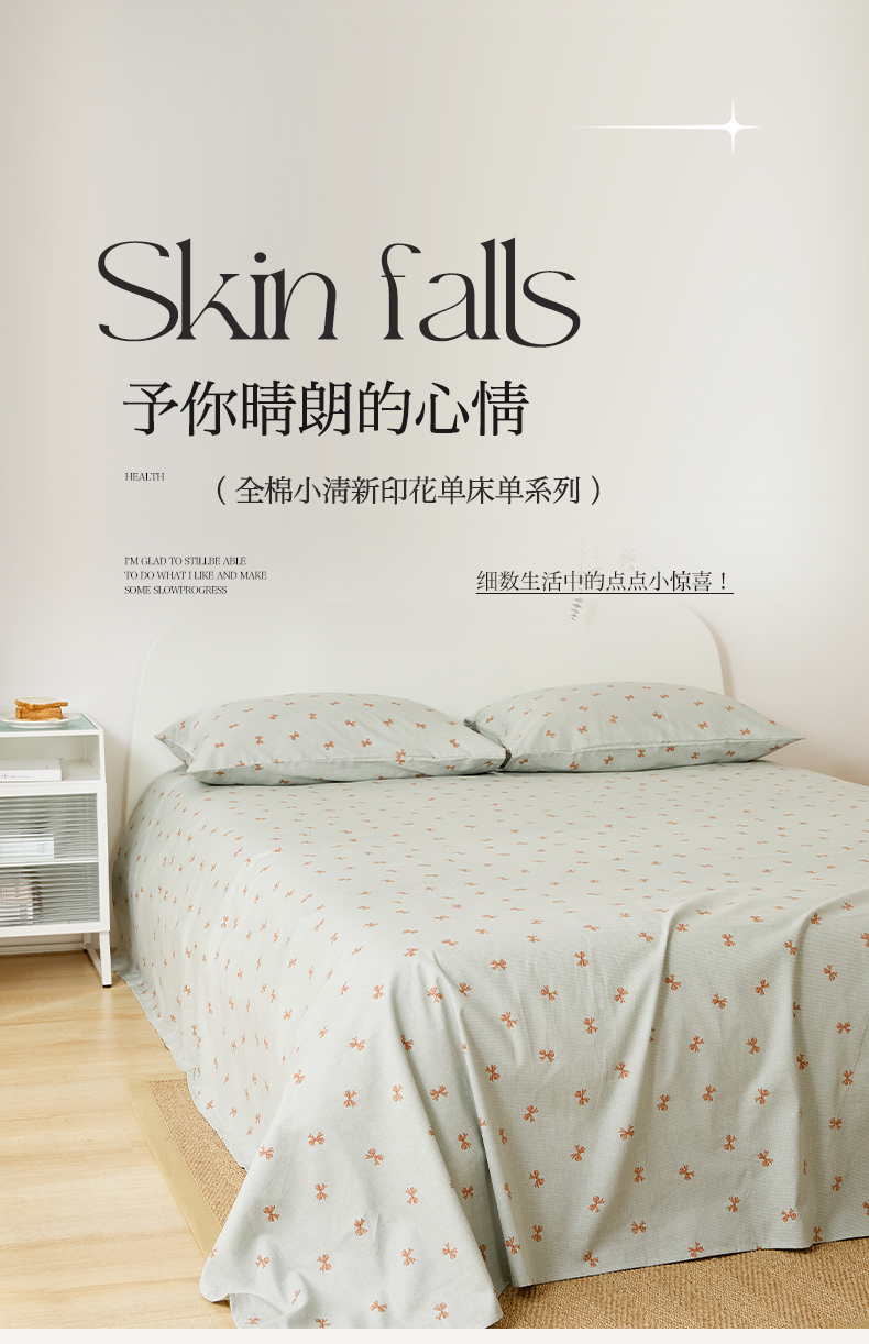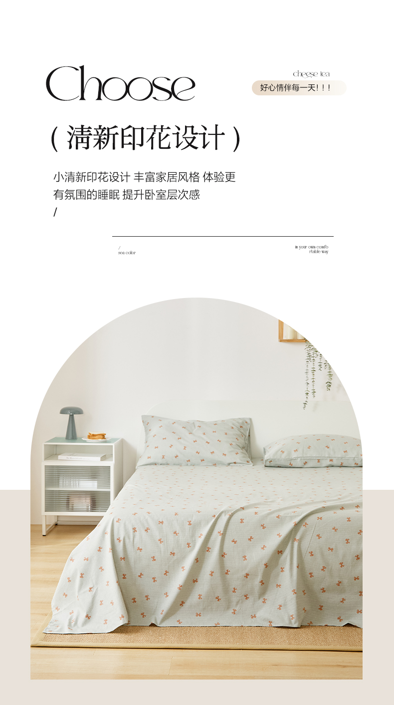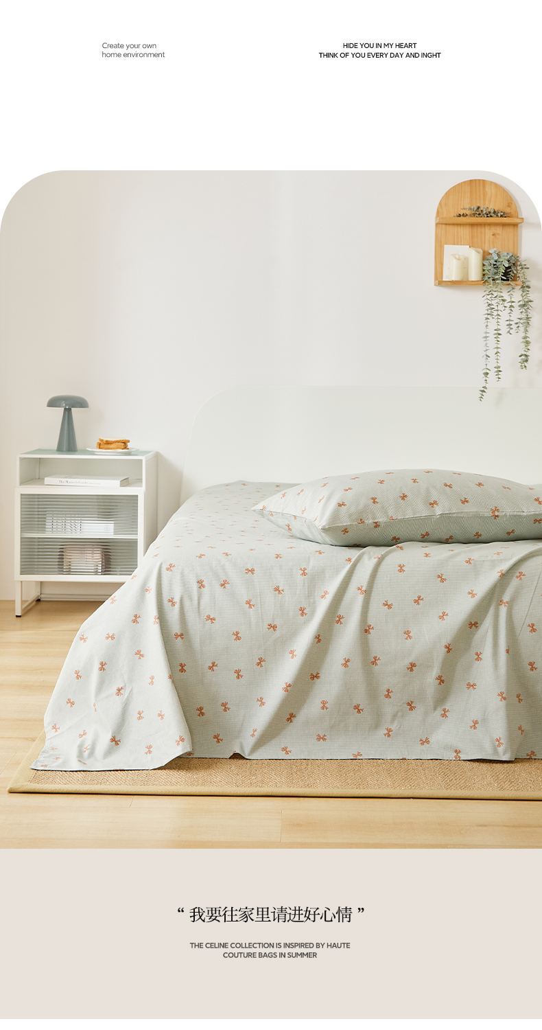 商品名称:EH家居 2025新款全棉小清新印花单床单-织光系列 情书