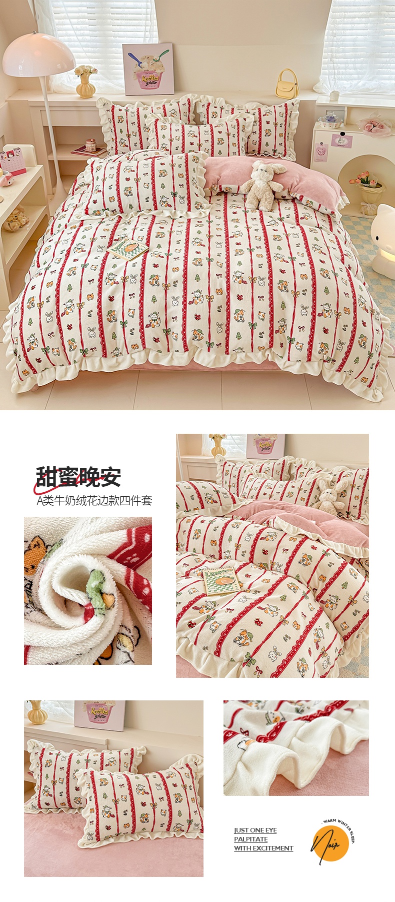 当前位置: 91家纺网 > 商品网购 > 床品套件 > 四件套 > 牛奶绒四件套 > 懒猫家纺 2025新款韩版牛奶绒四件套 草莓萌兔
