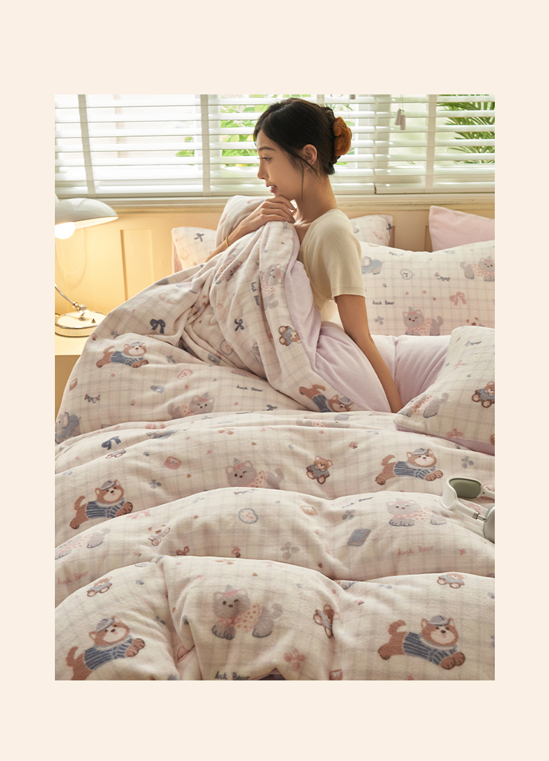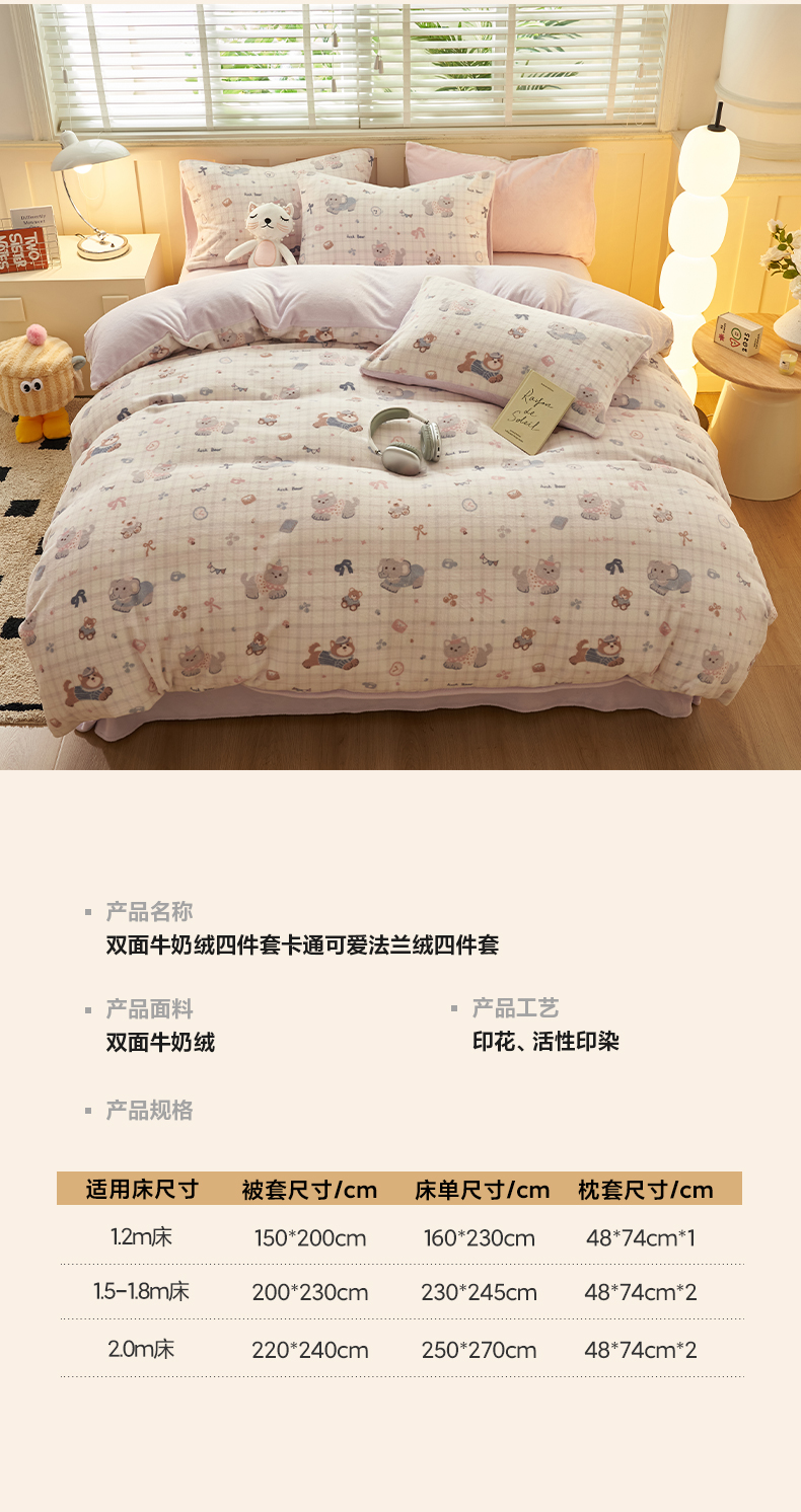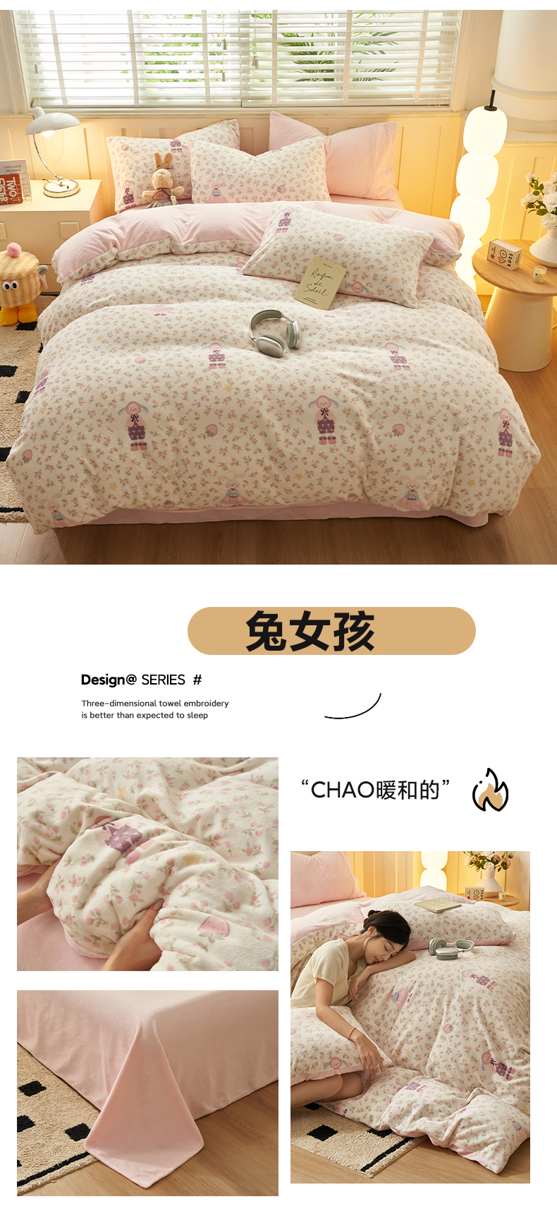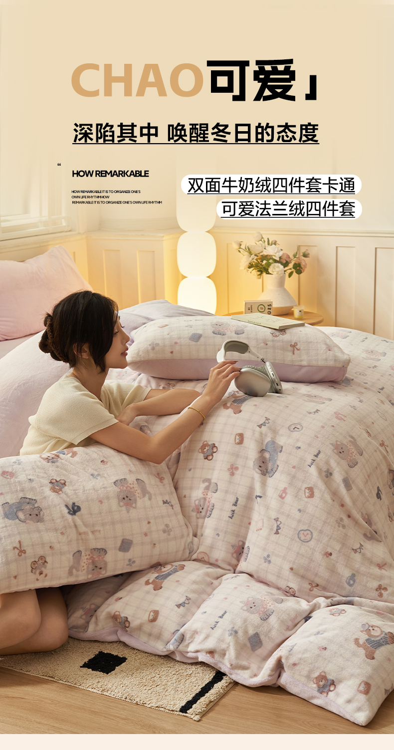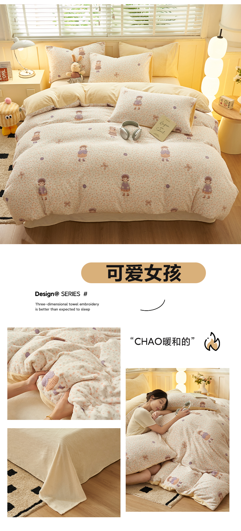 当前位置: 91家纺网 > 商品网购 > 床品套件 > 四件套 > 牛奶绒四件套 > 晨曦家纺 2025新款加厚230克双面牛奶绒卡通可爱法兰绒四件套 可爱女孩