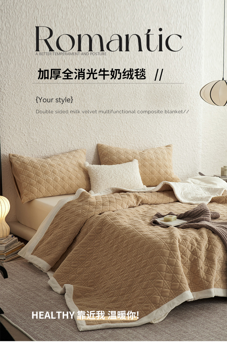 良品汇馆 2025【牛奶绒午睡毯】牛奶绒午睡毯子加厚纯色休闲沙发盖毯 柔粉