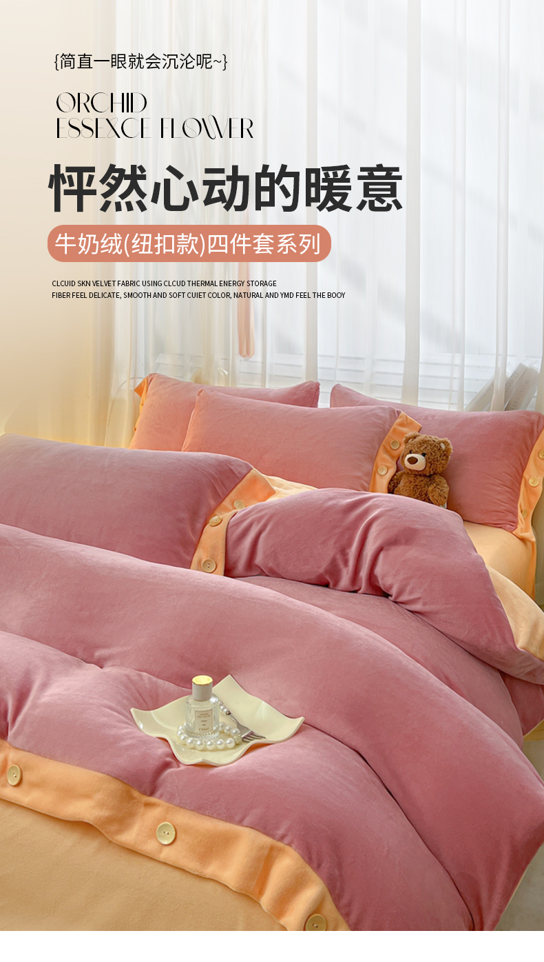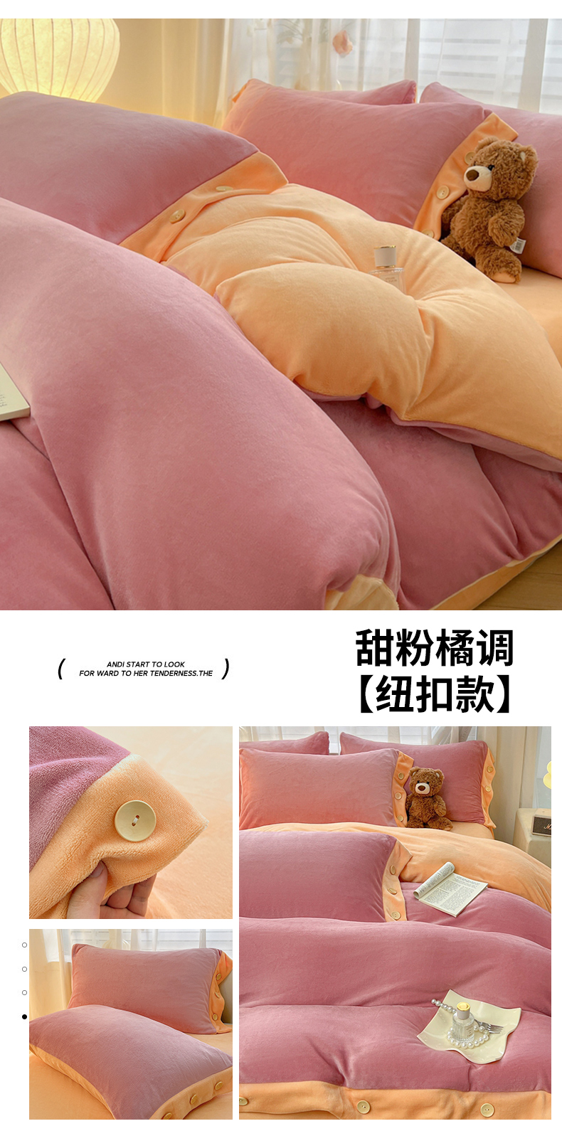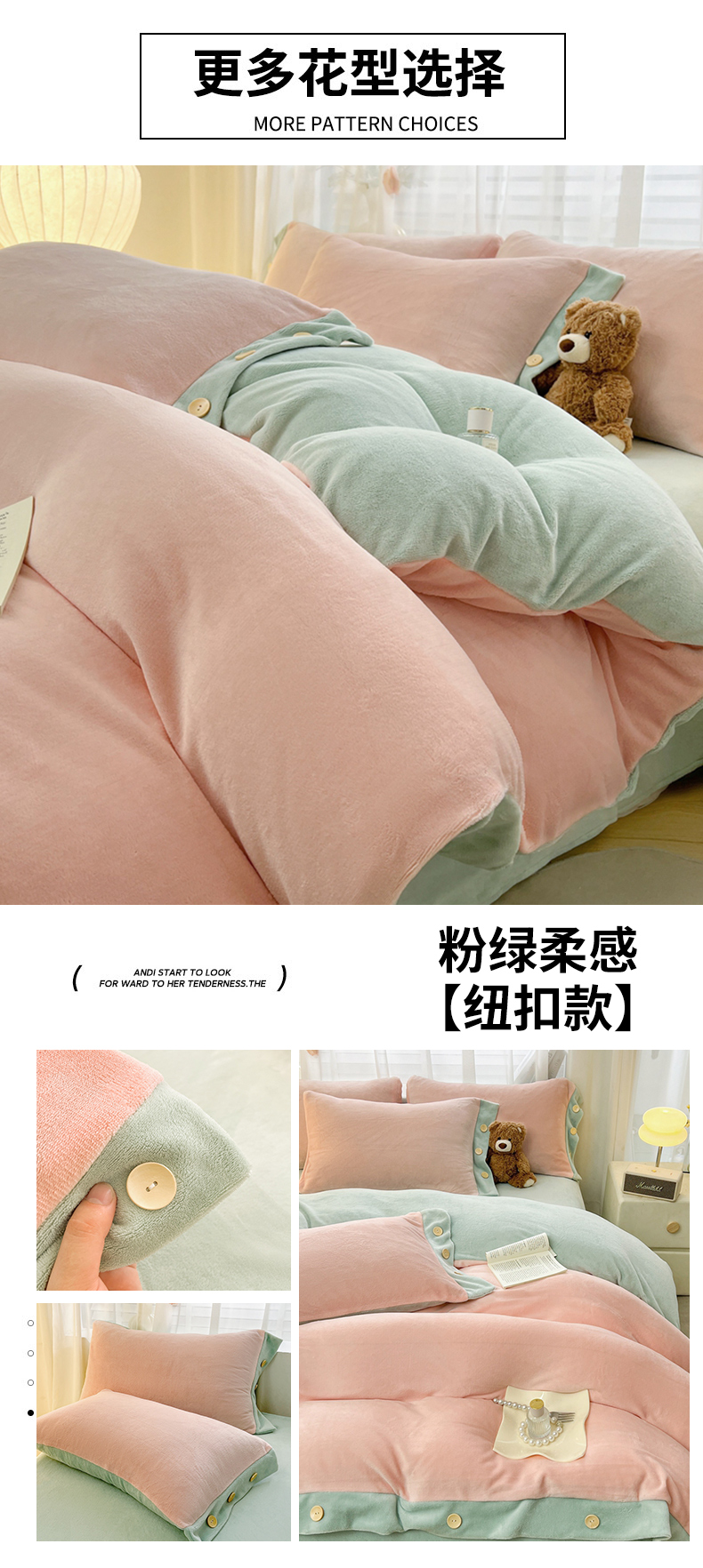 商品名称:(含买家秀)2025秋冬新款纯色双拼牛奶绒四件套纽扣款简约纽扣工艺款加厚保暖床单床笠四件套