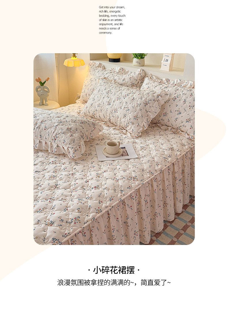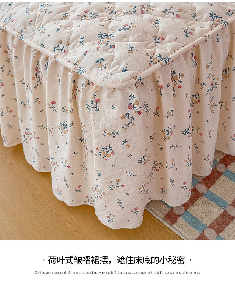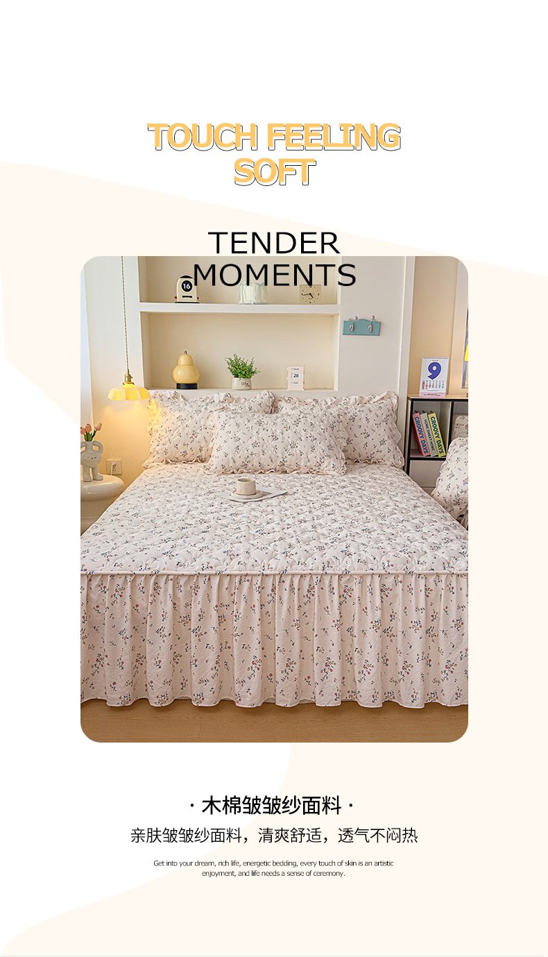 鼎丰家纺 2025新款水洗皱皱纱夹棉床裙 春风十里