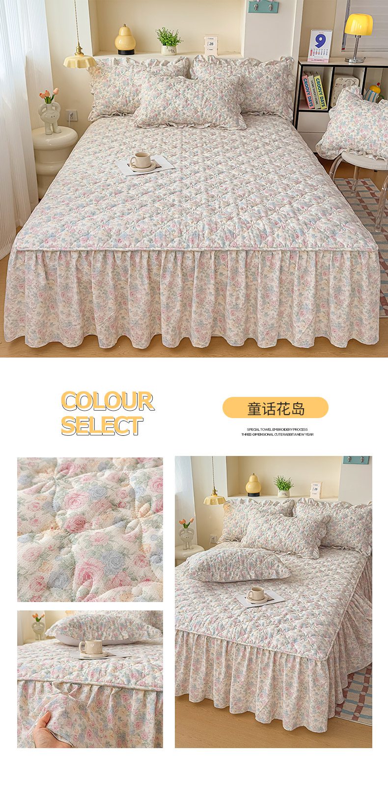 • 91家纺网 家纺一手货源 找家纺 (总)鼎丰家纺 2025新款水洗皱皱纱夹棉床裙,春风十里,蝶蝶飞舞,林间萌兔,奶昔蛋糕,芊芊花海,童话花岛,星眠云野,星语心愿