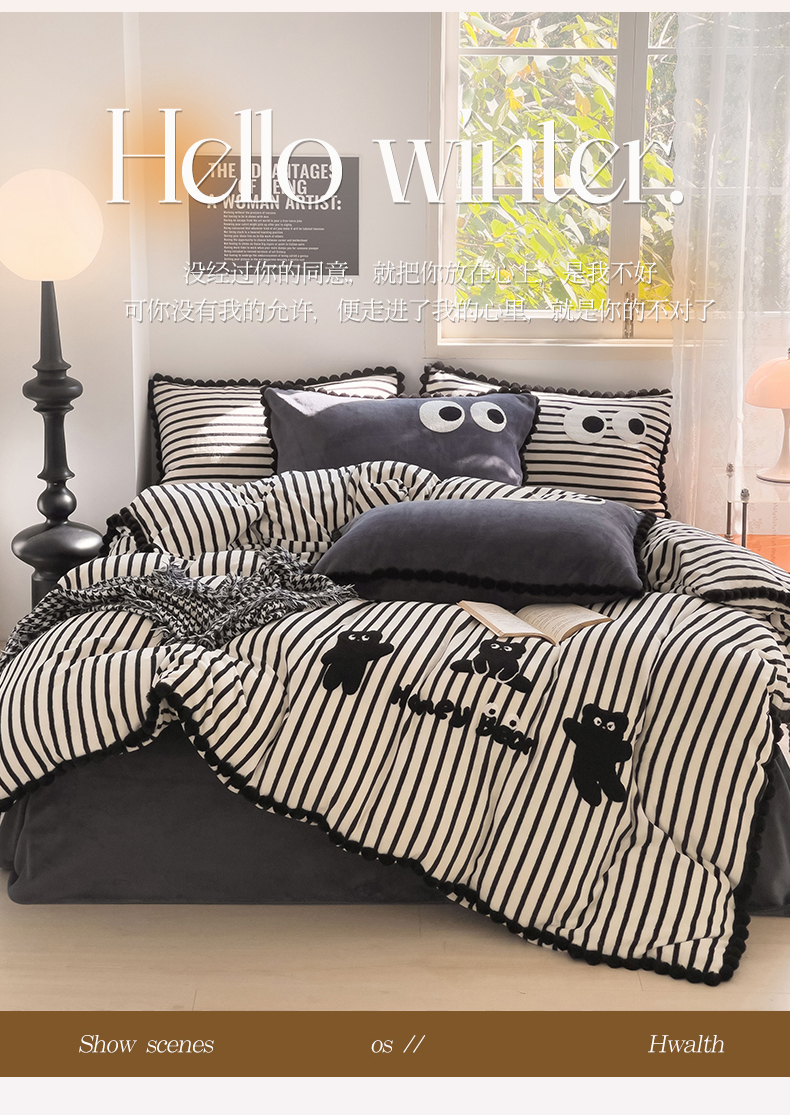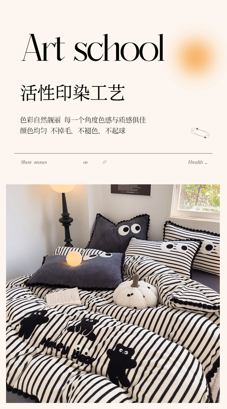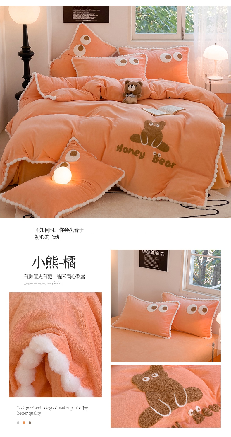 (总)炫拼家纺 2025新款大眼萌小熊韩系黑毛球毛巾绣牛奶绒四件套,大眼萌小猫-黑,大眼萌卡皮巴拉-咖,大眼萌小熊-粉黑,大眼萌小熊-黑,大眼萌小熊-黄,大眼萌小熊-橘,大眼萌小熊-蓝,大眼萌小熊猫-绿