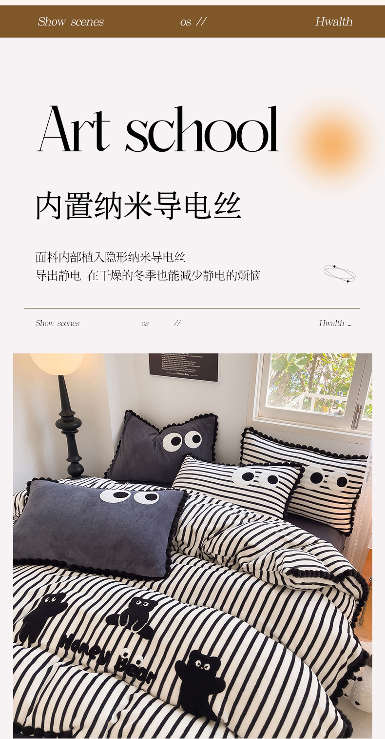 商品名称:炫拼家纺 2025新款大眼萌小熊韩系黑毛球毛巾绣牛奶绒四件套 大眼萌小熊-黑