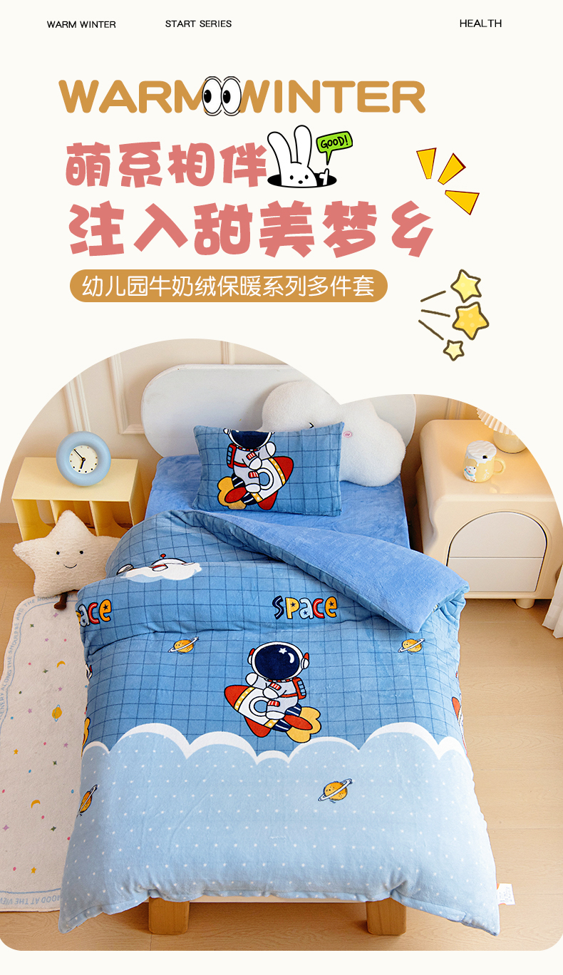 当前位置: 91家纺网 > 商品网购 > 床品套件 > 三件套 > 梵赫 2025新款加厚牛奶绒三件套儿童套件幼儿园三件套系列 快乐小熊