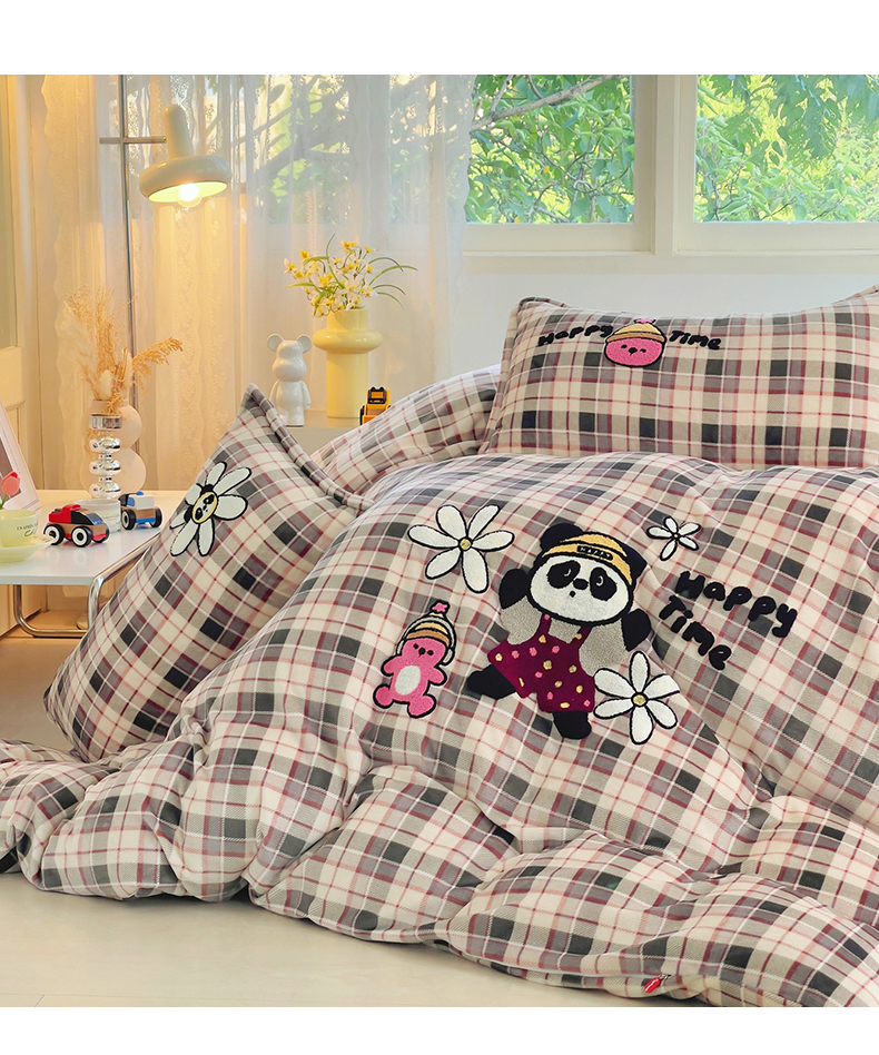 炫拼家纺 2025新款高克重牛奶绒毛巾绣卡通四件套-可孚系列 可孚-阳光熊猫-灰