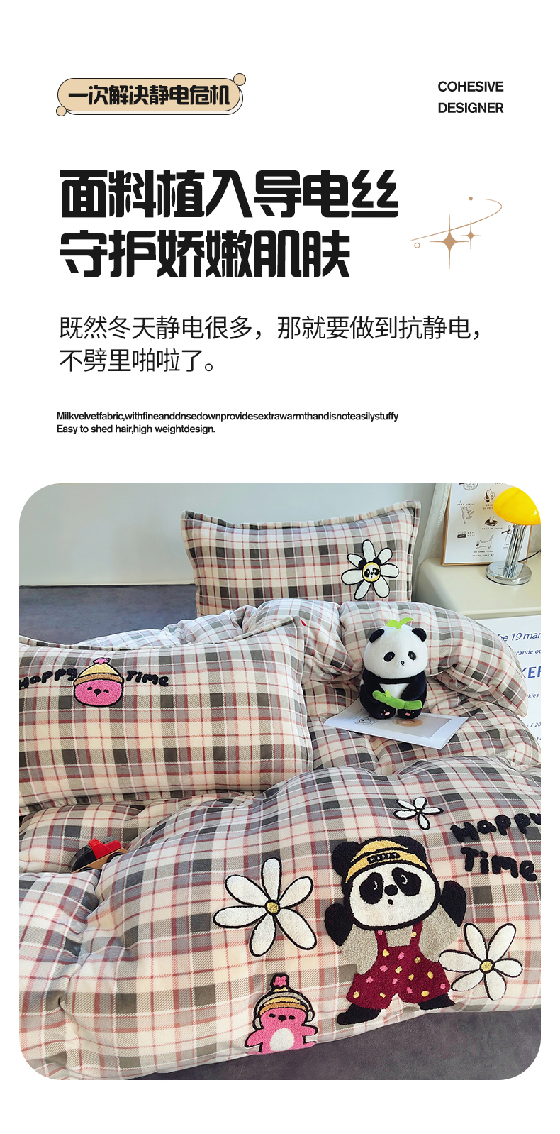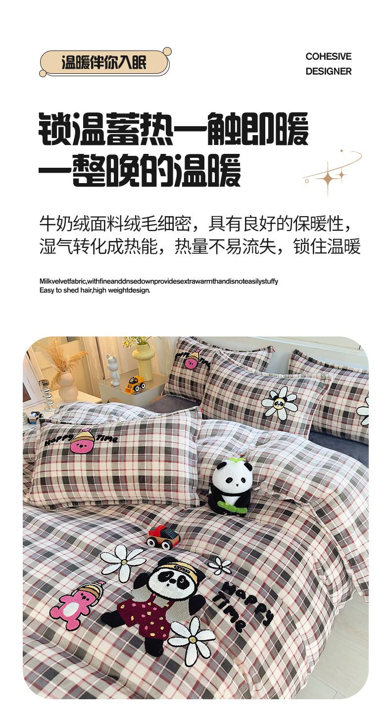 (总)炫拼家纺 2025新款高克重牛奶绒格子卡通毛巾绣加厚四件套-糖宝系列,糖宝-半勺清风,糖宝-喵了个咪,糖宝-甜豆女孩,糖宝-汪星日记,糖宝-星球萌宠,糖宝-元气小猪