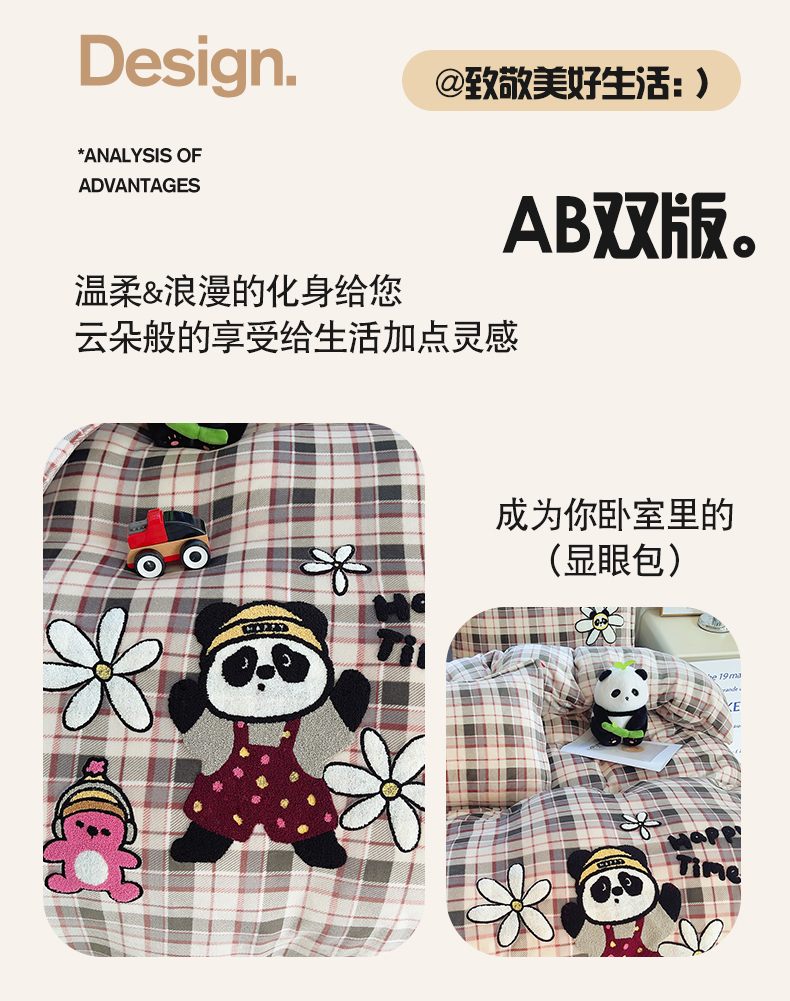 商品名称:炫拼家纺 2025新款高克重牛奶绒毛巾绣卡通四件套-可孚系列 可孚-阳光熊猫-灰
