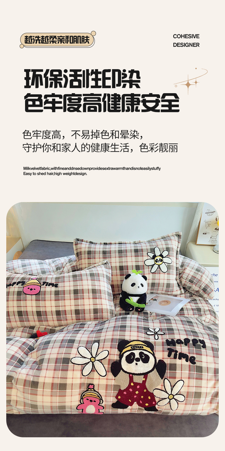 (总)炫拼家纺 2025新款大版数码印花卡通高克重牛奶绒四件套,乔治汪汪,快乐小象,熊和兔,啵啵熊,扭扭狗,苹果狗,豹纹兔兔,泡泡狗,搞怪兔兔,向钱看,元气企鹅