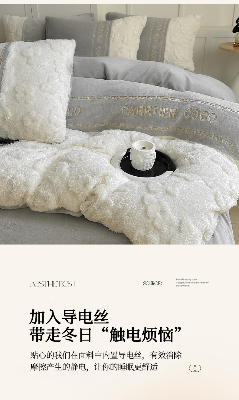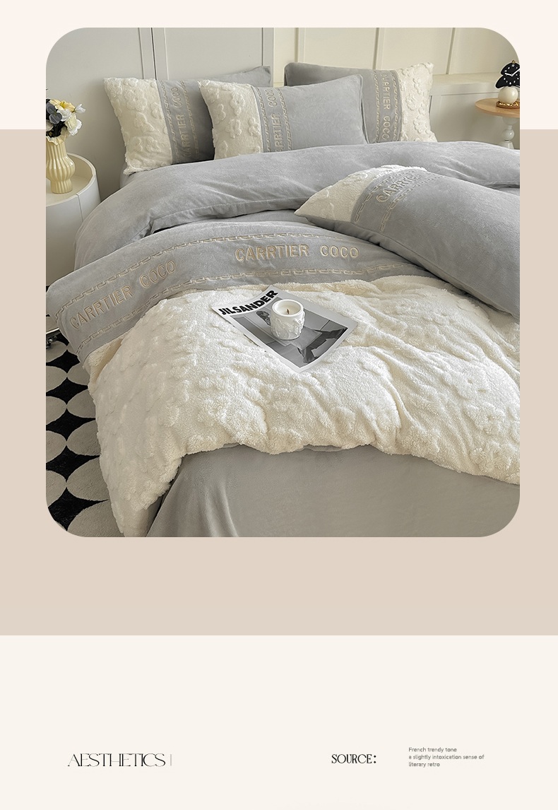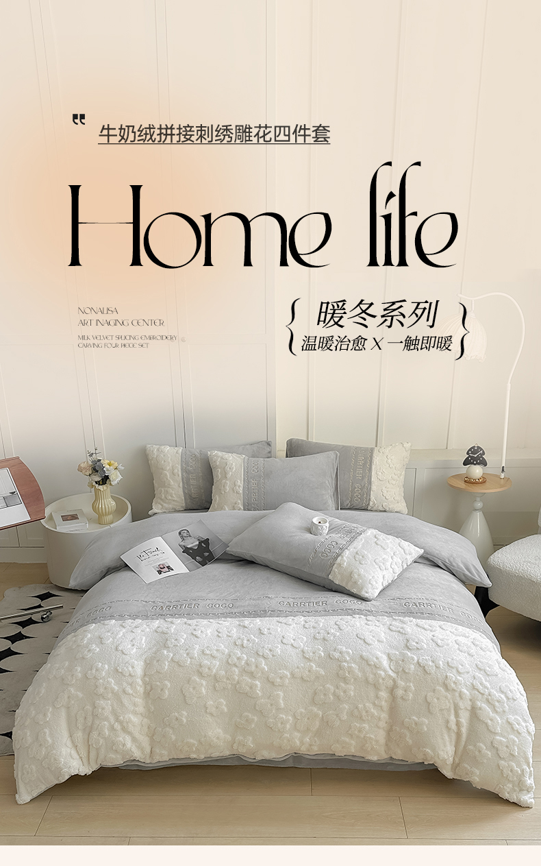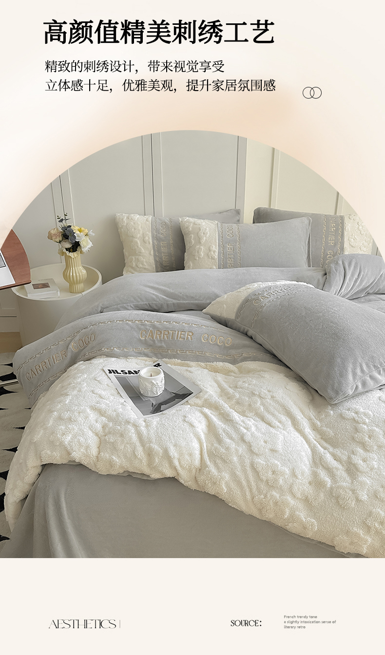 当前位置: 91家纺网 > 商品网购 > 床品套件 > 四件套 > 牛奶绒四件套 > 灰鲸 2025新款牛奶绒拼接刺绣四件套-安娜 安娜-纳多灰