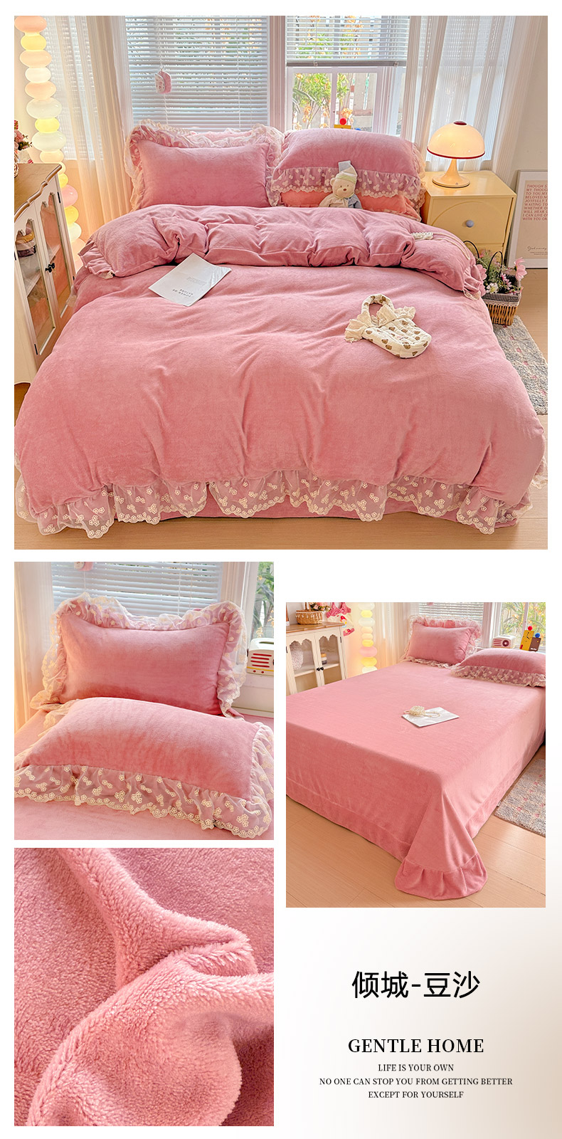 (总)鑫利来家纺 2025新款法式蕾丝花边牛奶绒四件套韩版花边加厚牛奶绒四件套,倾城-草绿,倾城-豆沙,倾城-奶黄,倾城-少女粉,倾城-天蓝,倾城-紫