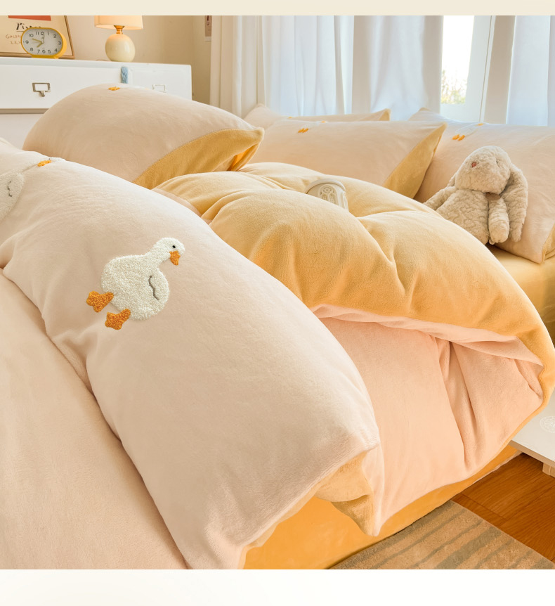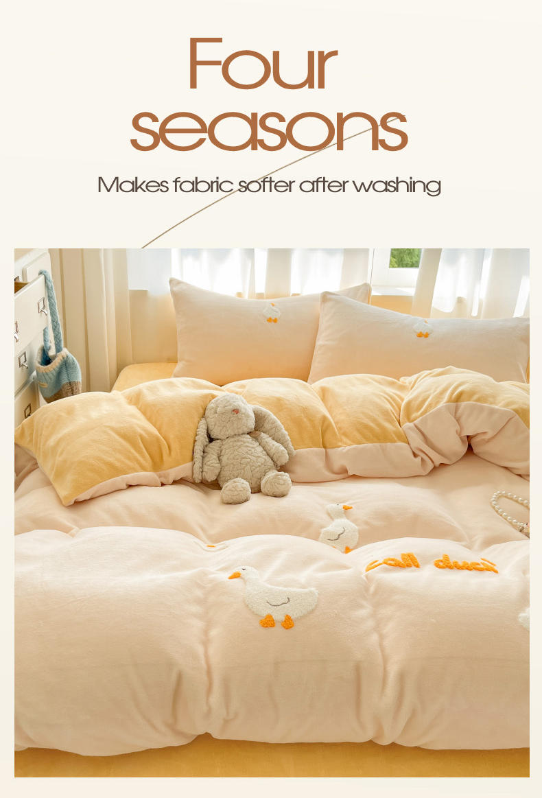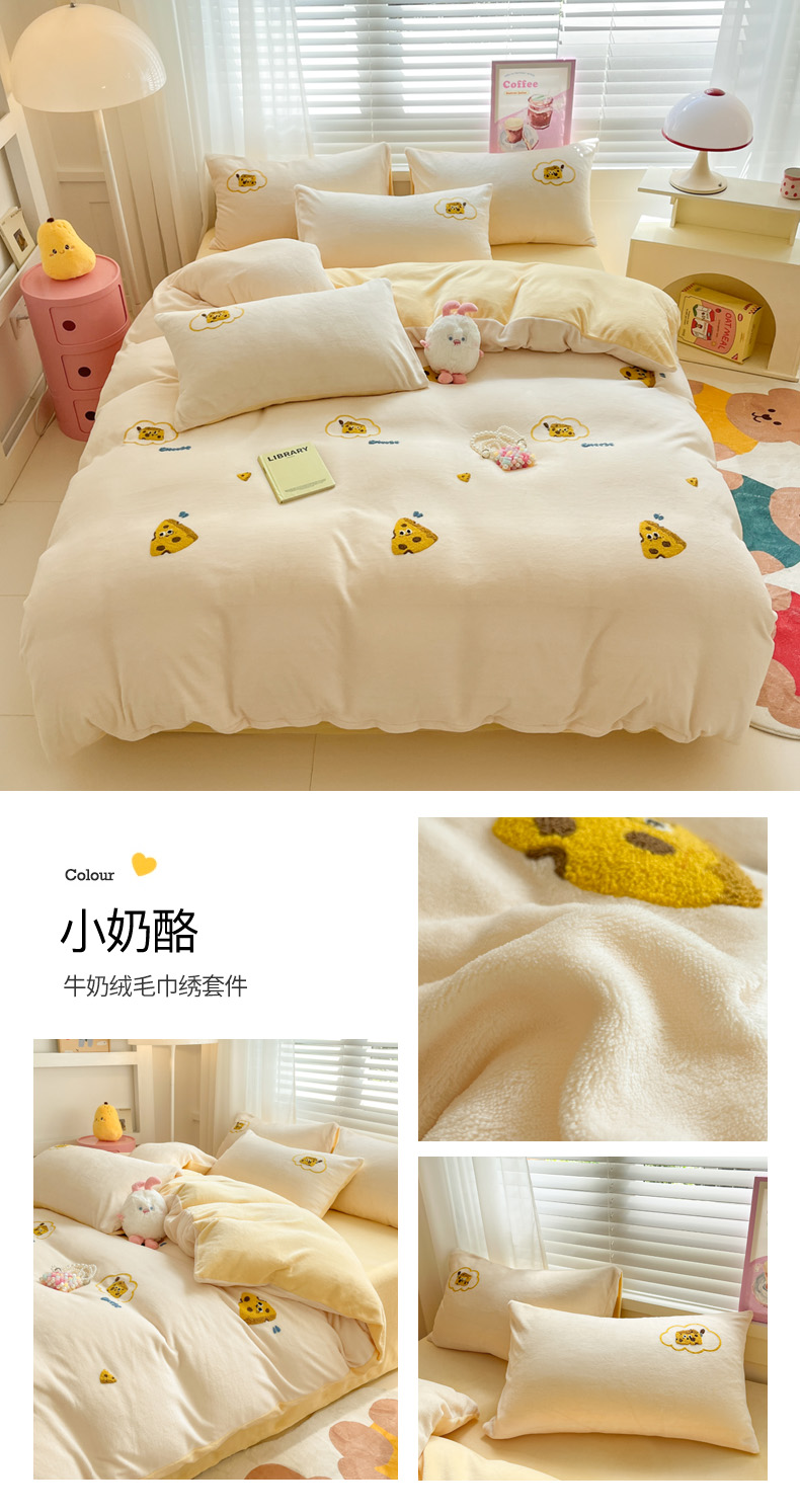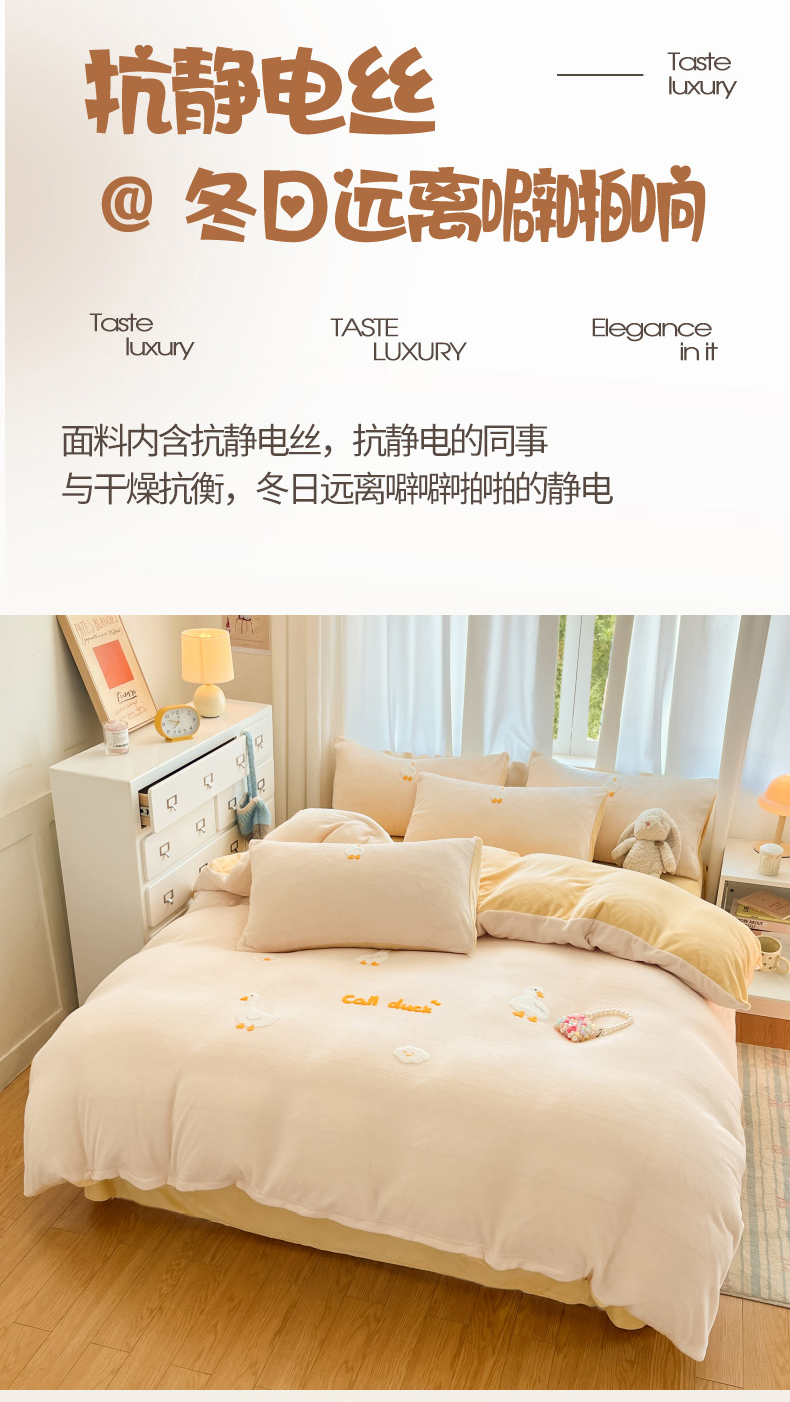 当前位置: 91家纺网 > 商品网购 > 床品套件 > 四件套 > 牛奶绒四件套 > 丽涵家纺 2025秋冬新品210克牛奶绒毛巾绣四件套卡通绣花学生床笠三件套 柯尔鸭