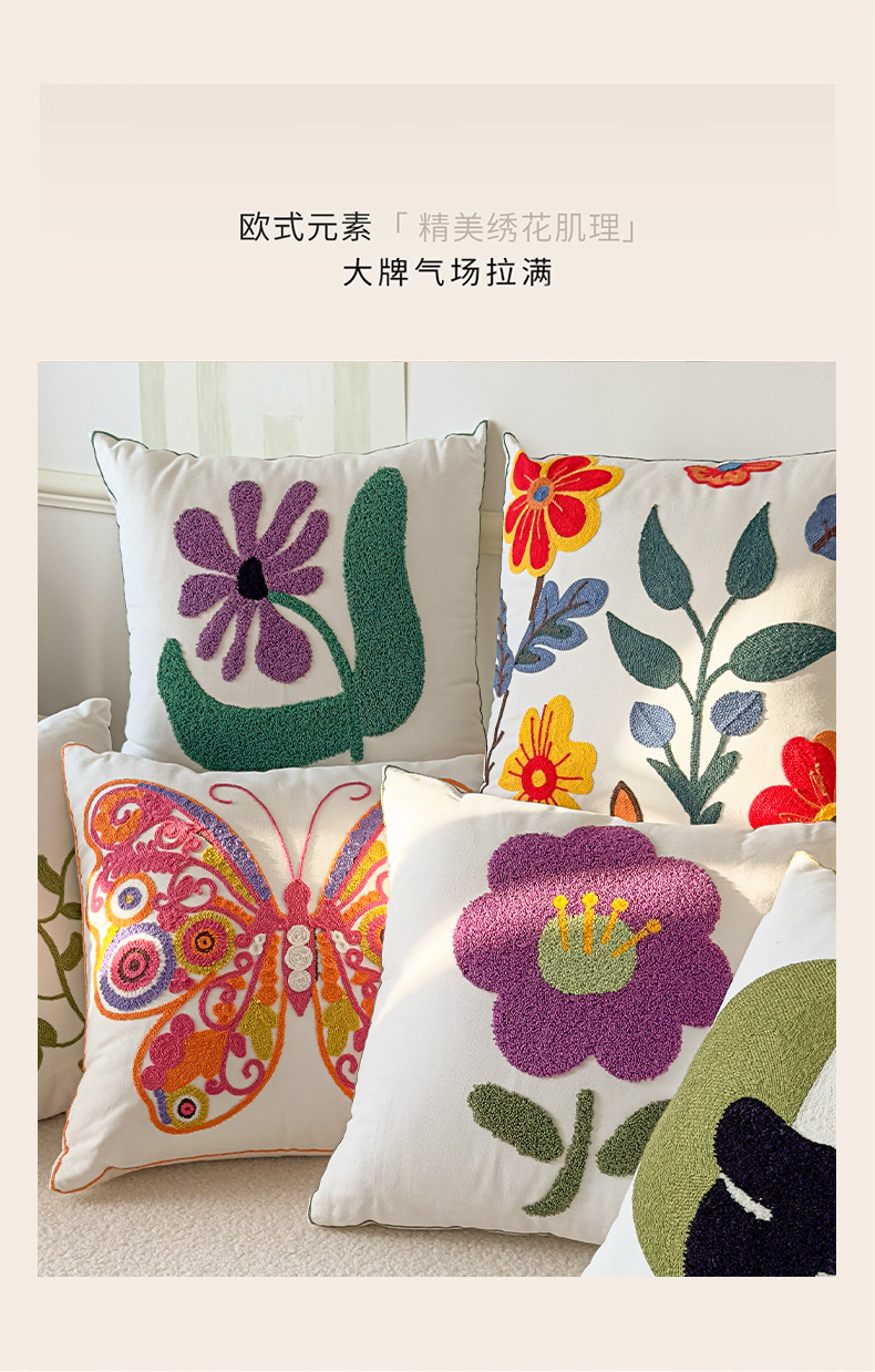 (总)诺可 2025新款全棉毛巾绣抱枕跨境花物语系列,组合,模特图,彩色石,蝶影,繁华拾光,粉蝴蝶,禾穗,花环,花卉-橙,花卉-粉,花雾,花盏,岚山,林礼,绿蝴蝶,蔓藤,木瑾花,南瓜,霓虹,柠檬叶,山奈,石榴蓝,石榴紫,树叶,禧朵,夏日铃兰,向阳花,星葵,叶坊,雨棠,枝瑾,紫蝴蝶,紫蕊,磨毛布单抱枕芯