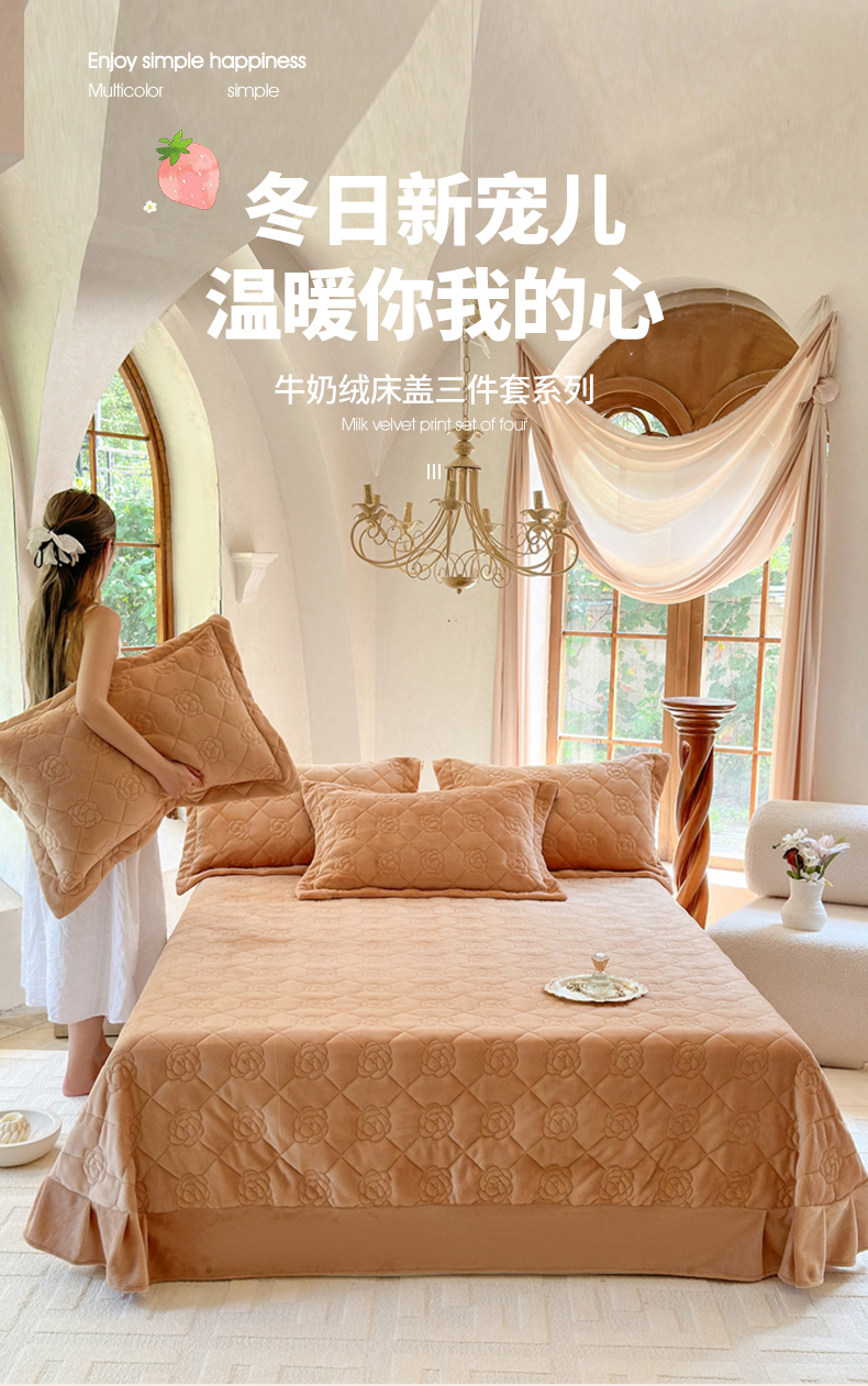 商品名称:7V 2025新款牛奶绒床盖 浅棕