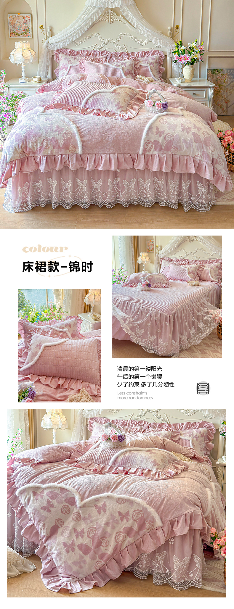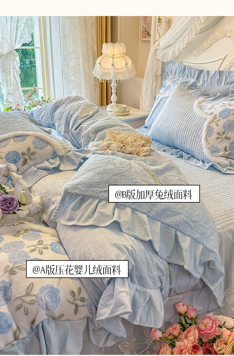 (总)宜凡家纺 2025新款兔绒提花牛奶绒夹棉床裙四件套,爱心 少女粉,爱心 粉紫,爱心 驼色,蝶舞 大红,蝶舞 米色,蝶舞 浅紫,蝶舞 玉色,简爱 苍青,简爱 豆沙紫,简爱 玉色,樱桃 苍青,樱桃 豆沙紫,樱桃 奶油白