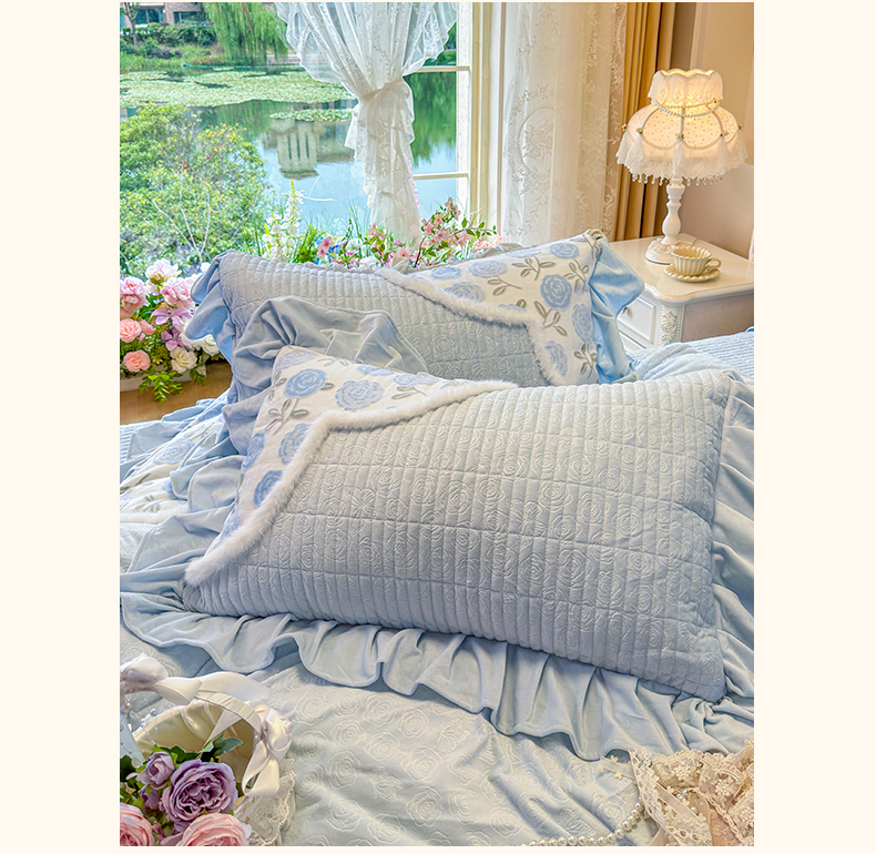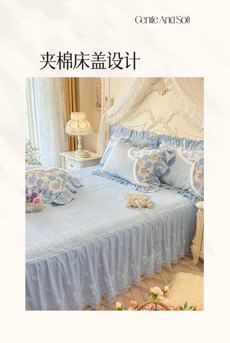 商品名称:宜凡家纺 2025新款婴儿绒压花撞色双拼夹棉床裙四件套 床裙款-锦时
