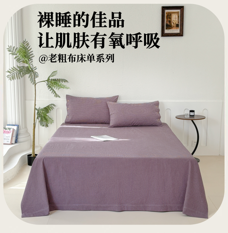 • 91家纺网 家纺一手货源 找家纺 织雅漫 2025春夏新款高端舒棉系列全棉纯棉100%棉细纱老粗布床单凉席席子 扶霞-米