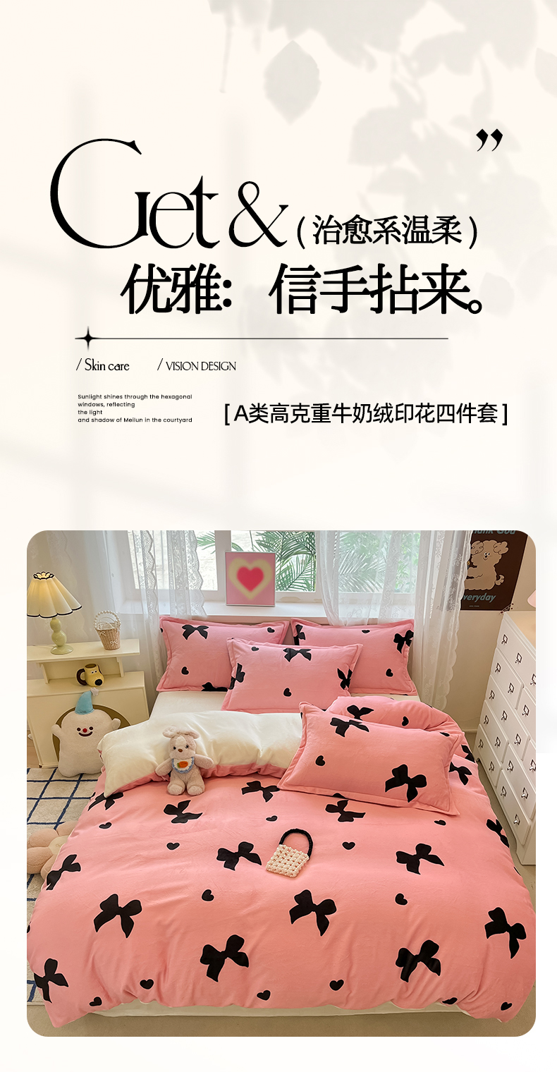 当前位置: 91家纺网 > 商品网购 > 床品套件 > 四件套 > 牛奶绒四件套 > 卡斯诺家纺馆 2025新款高克重牛奶绒印花四件套 少女情结