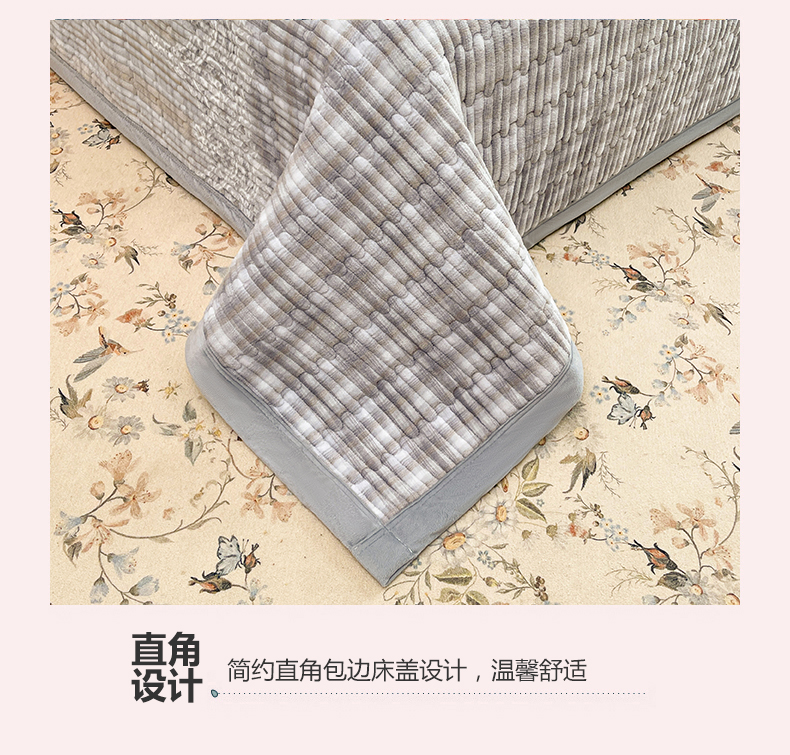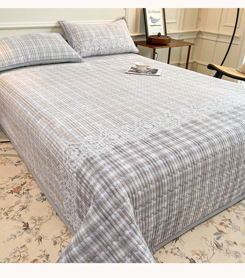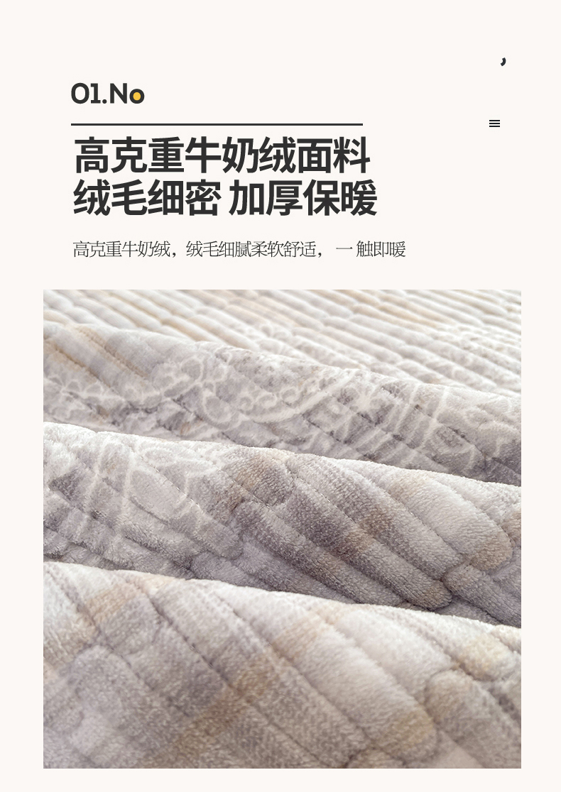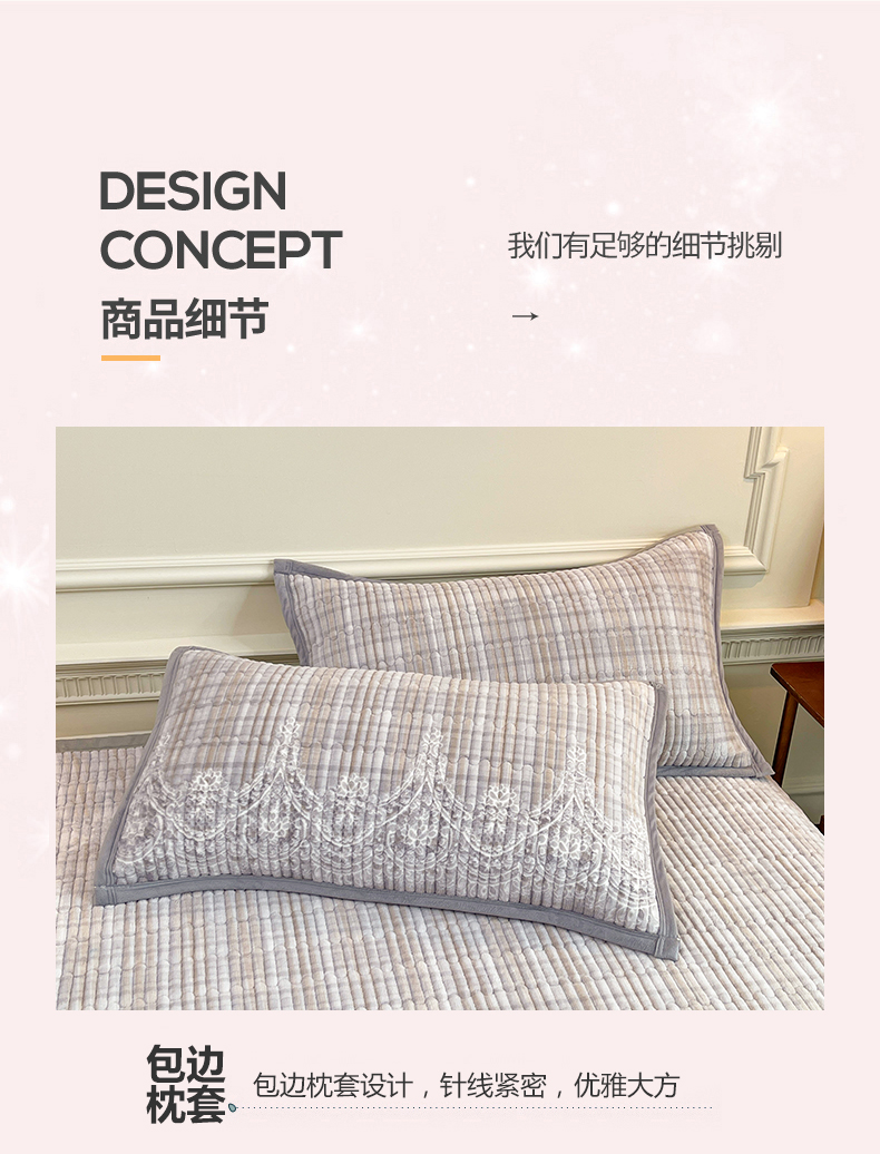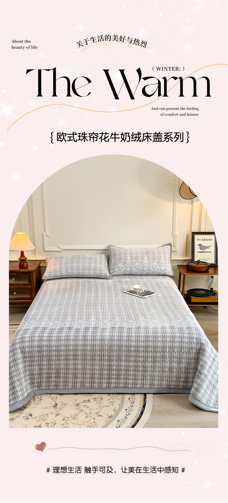 慕木家纺 2025新款A类高克重欧式牛奶绒夹棉床盖珠帘花系列-场景一 珠帘花-灰