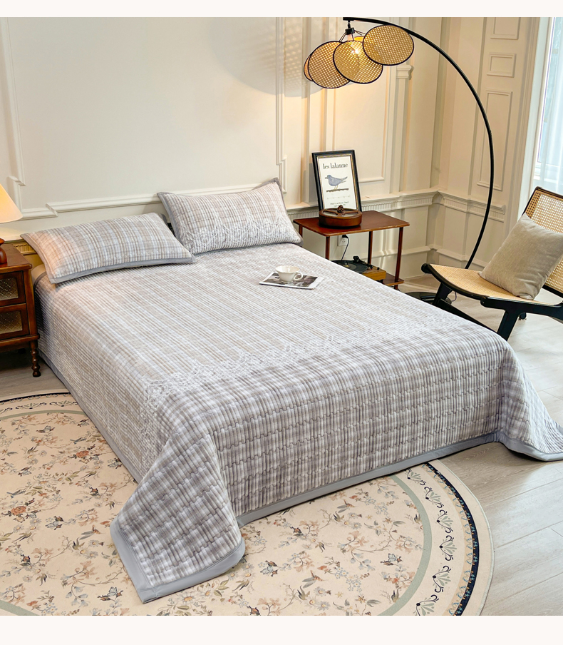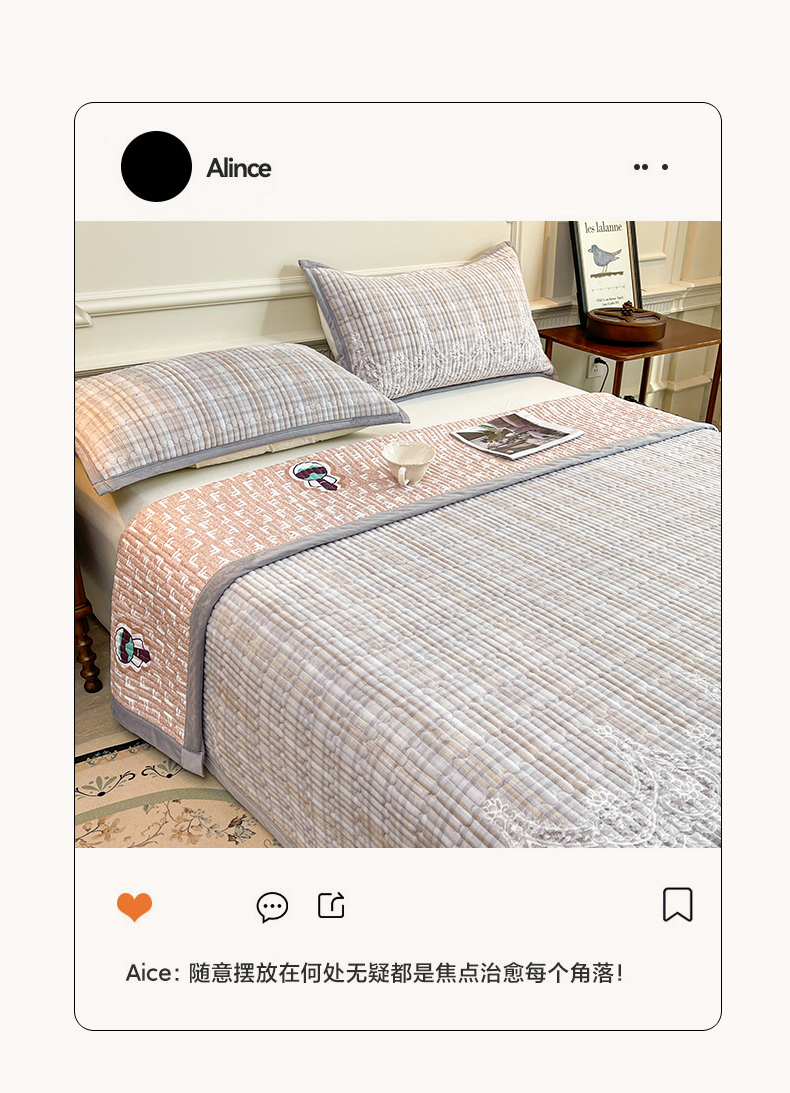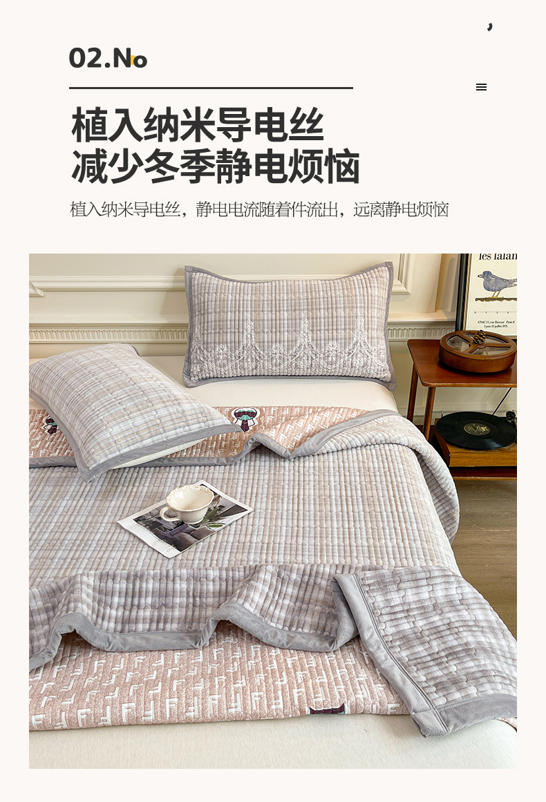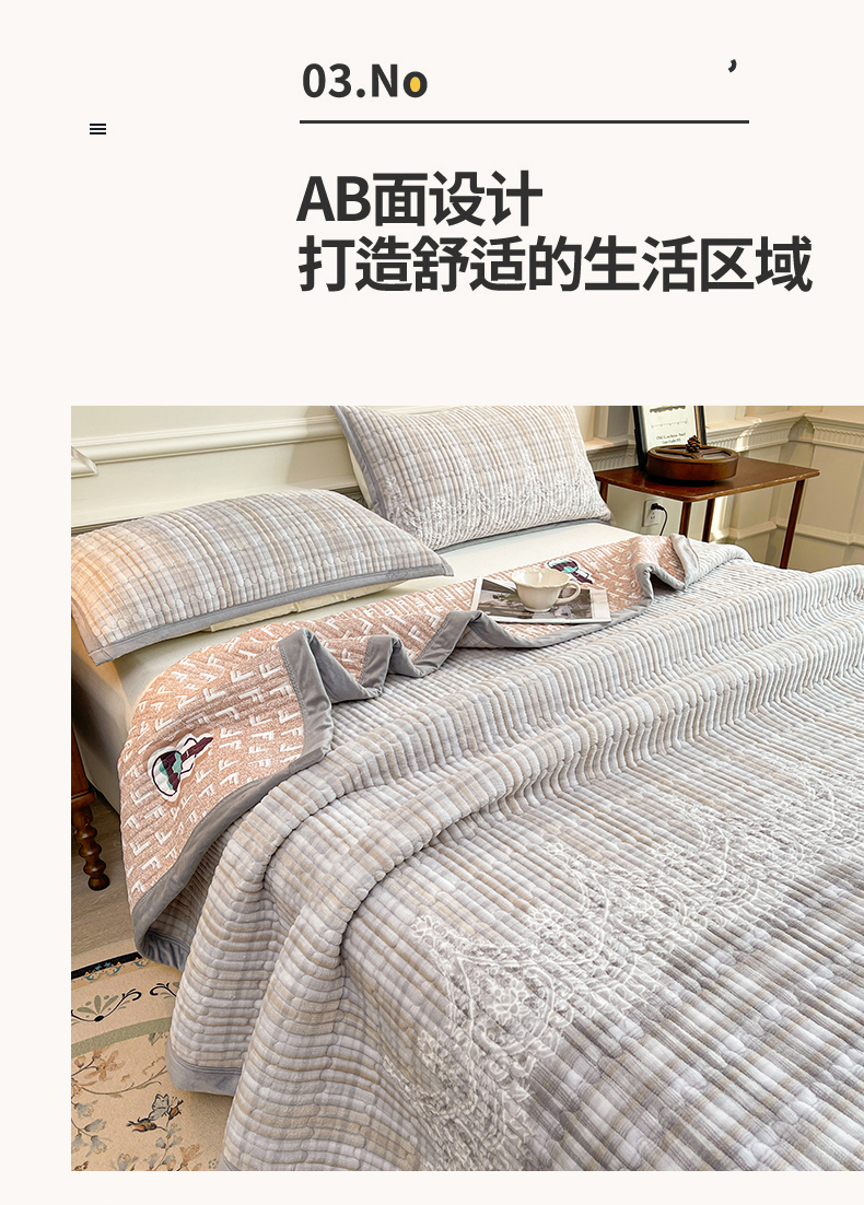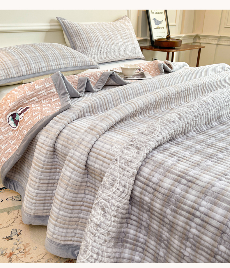 慕木家纺 2025新款A类高克重欧式牛奶绒夹棉床盖珠帘花系列-场景一 珠帘花-灰
