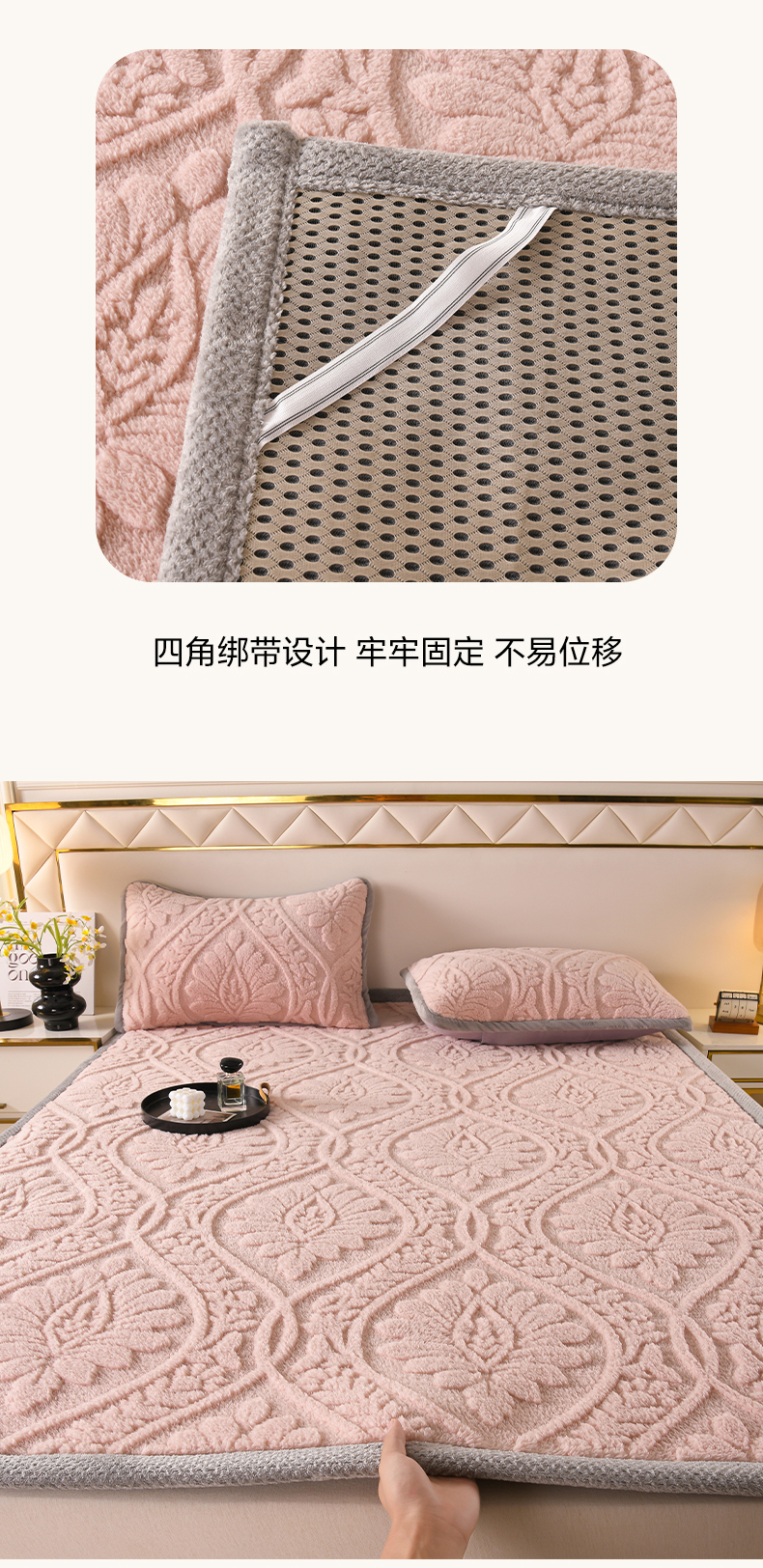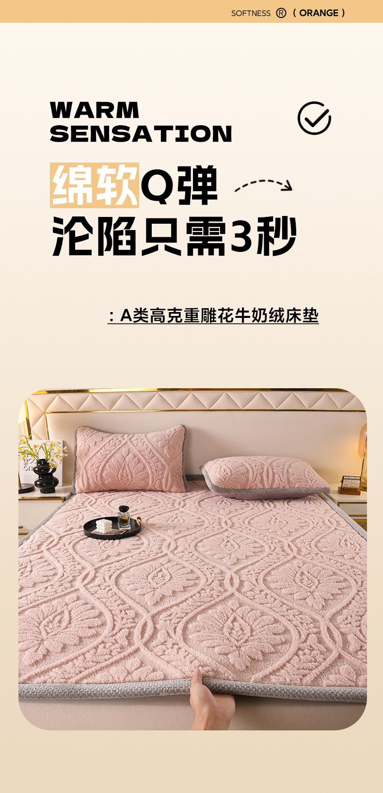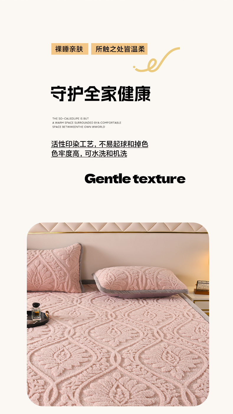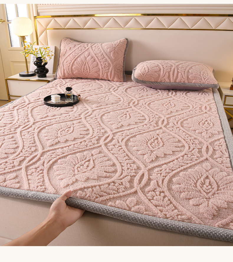 商品名称:鑫姿席业 2025新款A类高克重雕花牛奶绒床垫 米兰-樱花粉