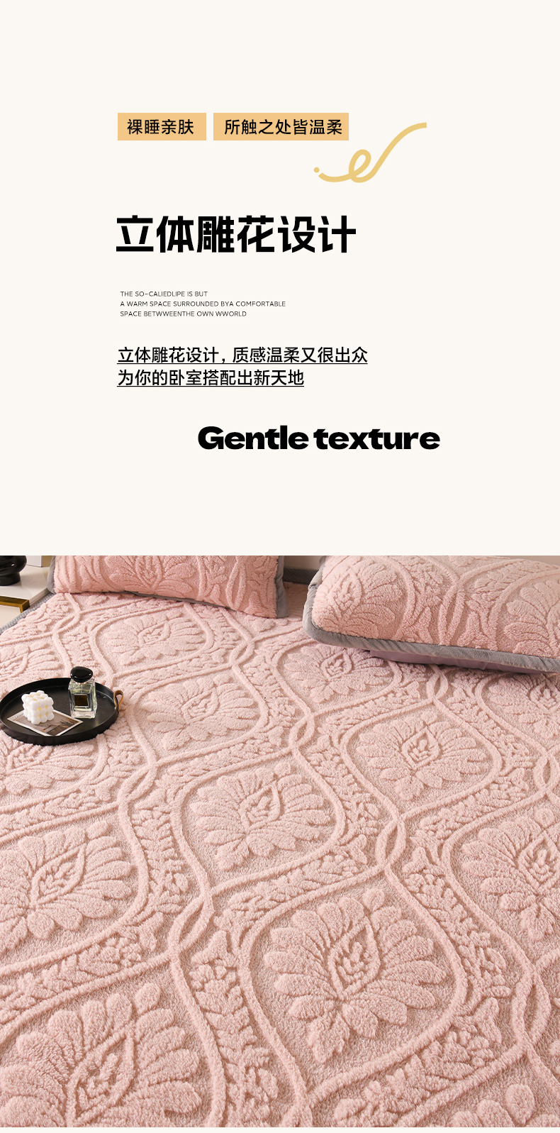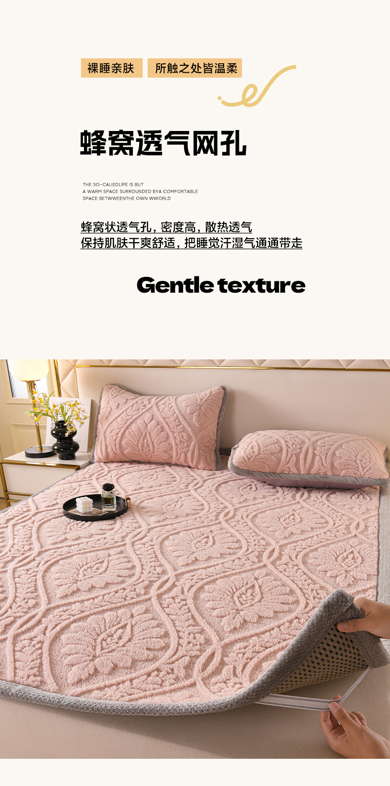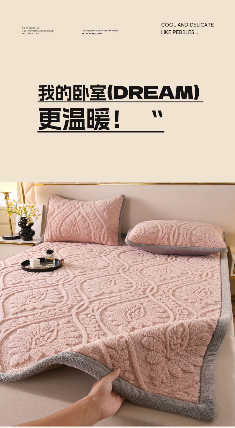 商品名称:鑫姿席业 2025新款A类高克重雕花牛奶绒床垫 米兰-樱花粉