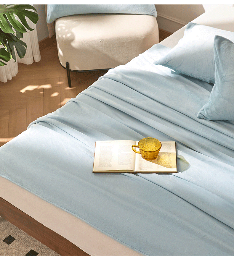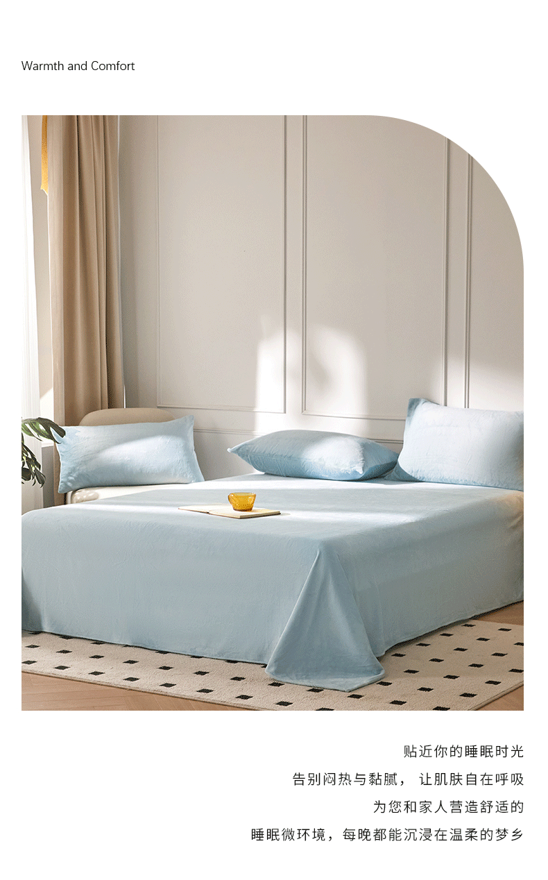 商品名称:618家纺 2025新款樱花绒单品四件套系列-单床单 雾蓝