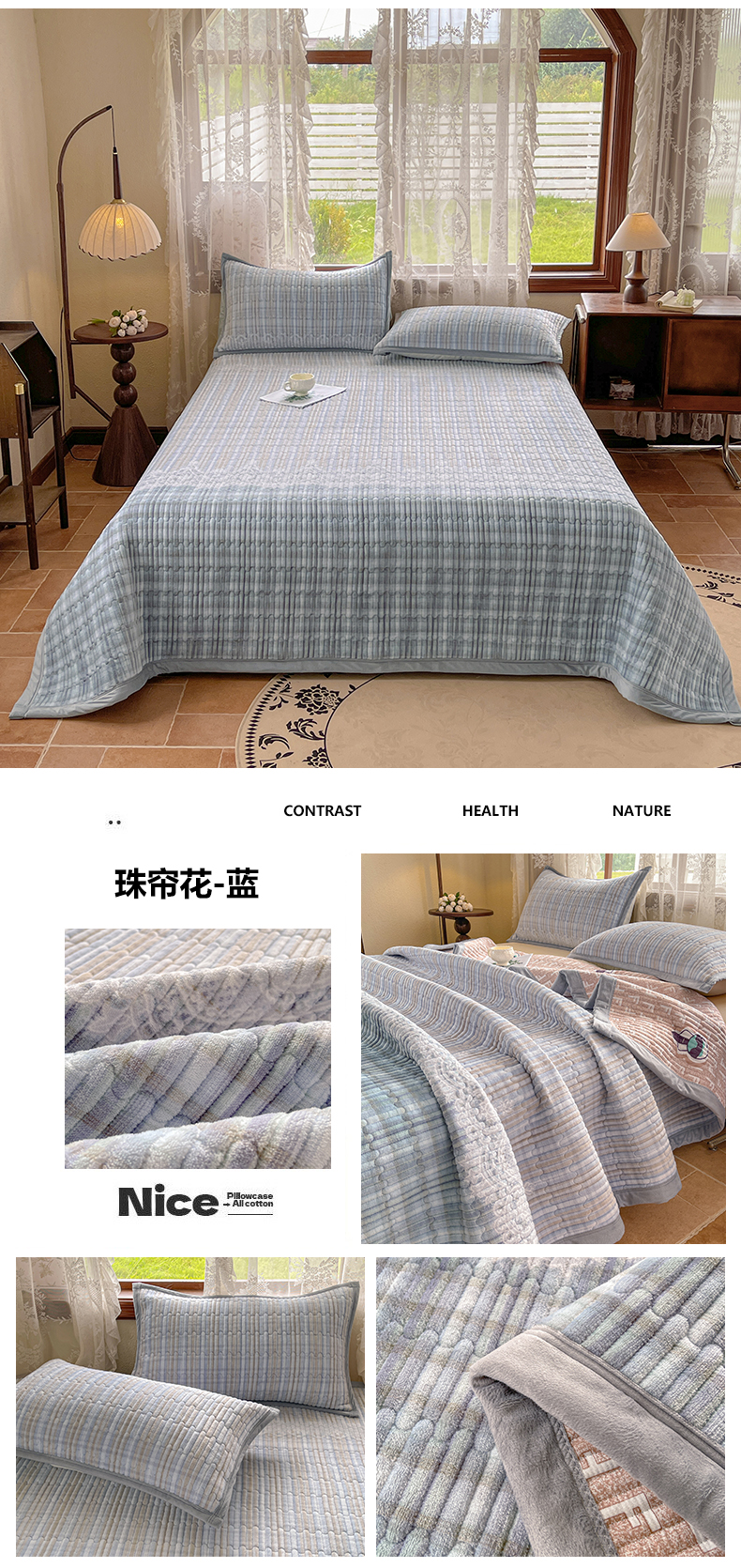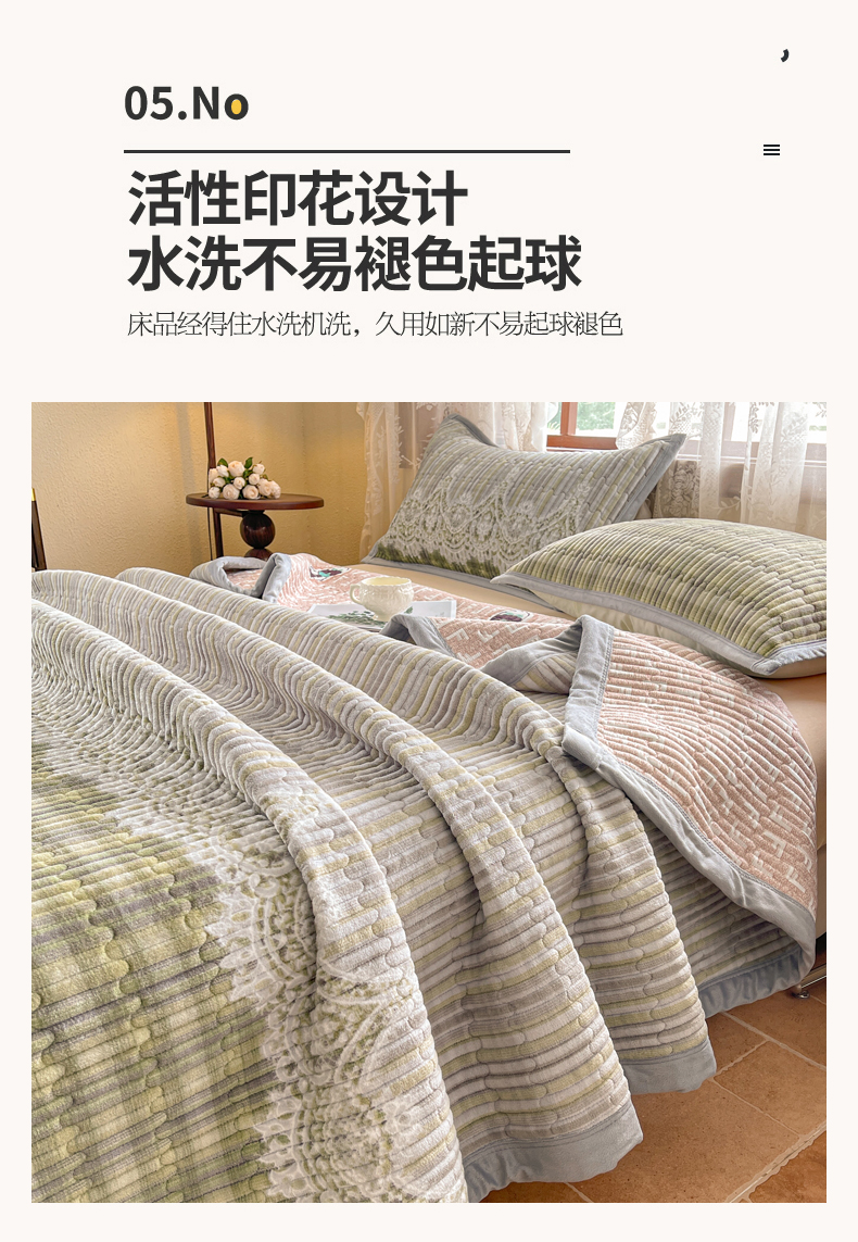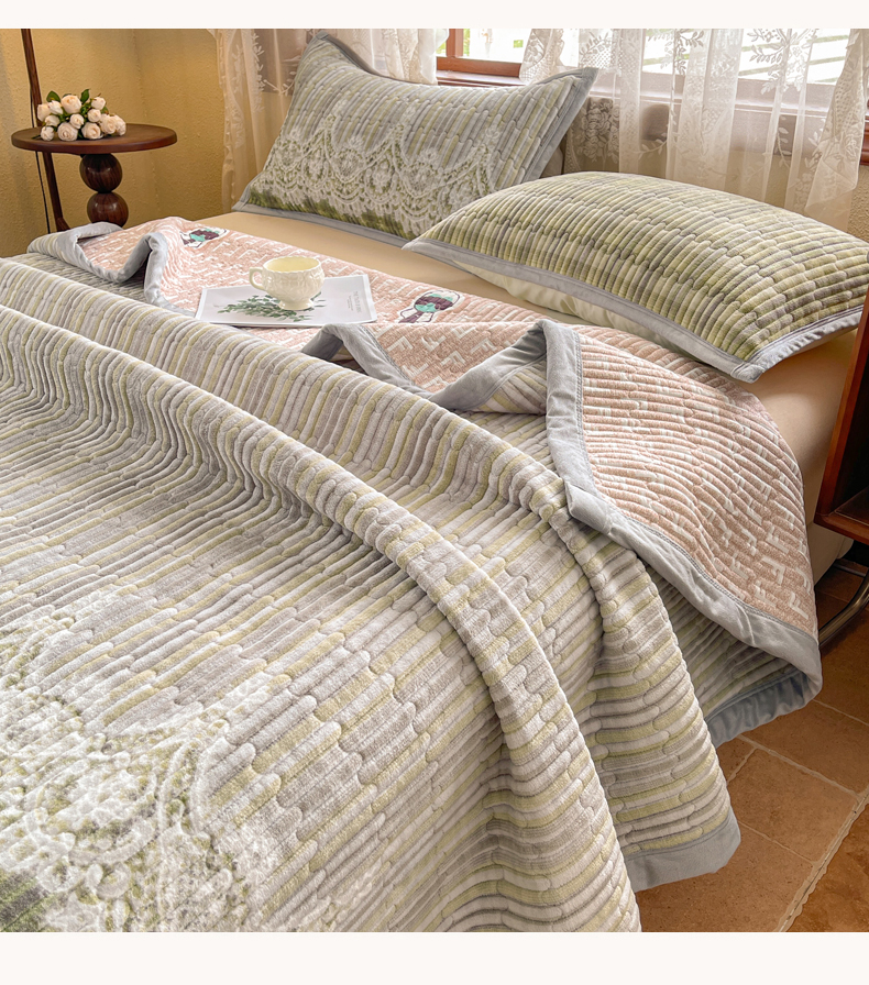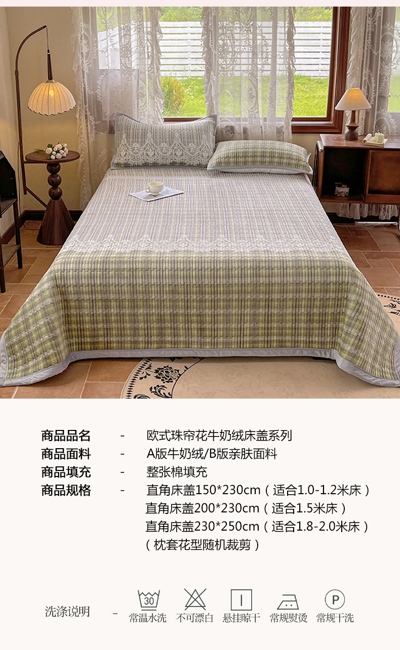 商品名称:(总)慕木家纺 2025新款A类高克重欧式牛奶绒夹棉床盖珠帘花系列-场景二