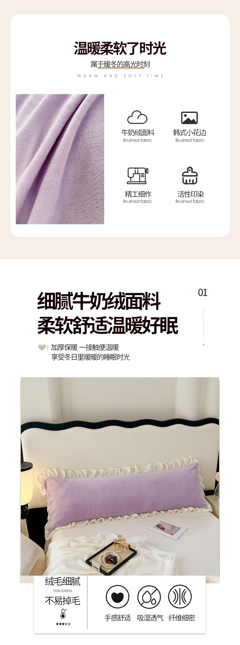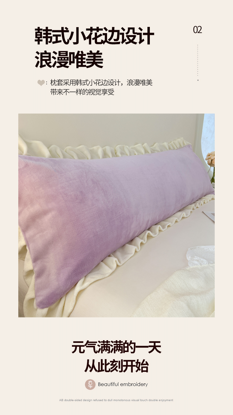商品名称:梦舒羽 2025A类新款牛奶绒花枕套边双人宿舍法兰绒情侣枕头套珊瑚绒枕芯套 丁香紫