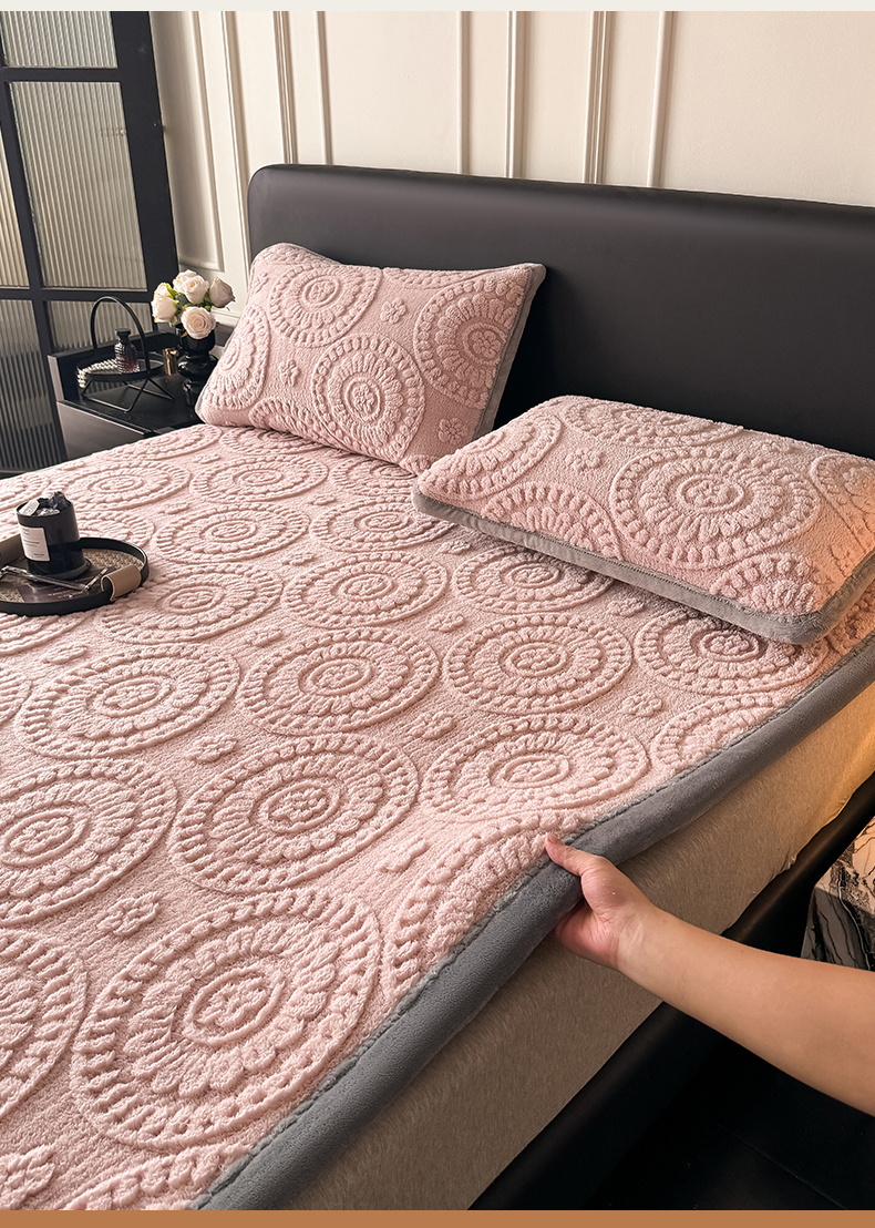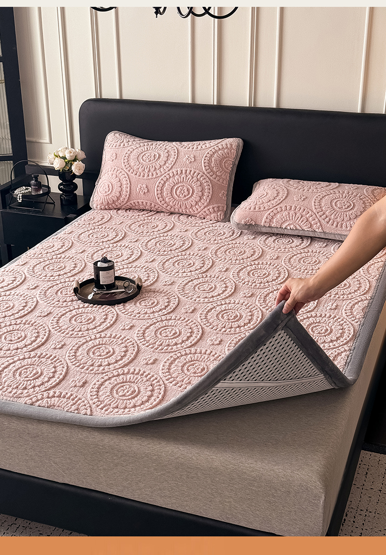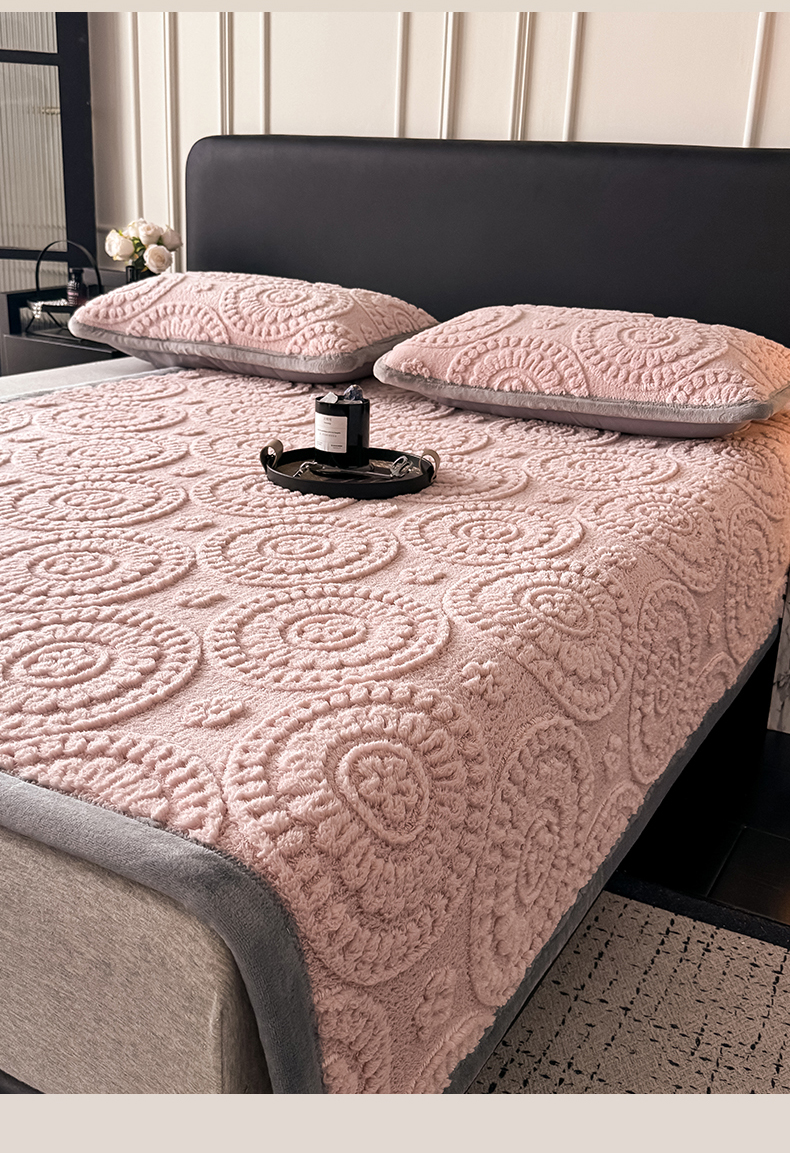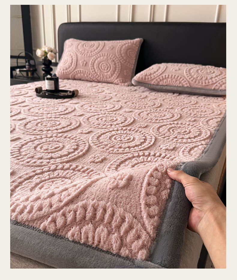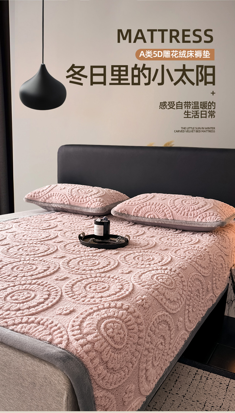 鑫姿席业 2025新款5D雕花绒床褥垫床垫 饼干花-粉