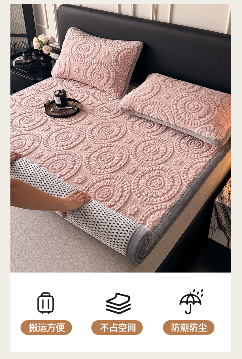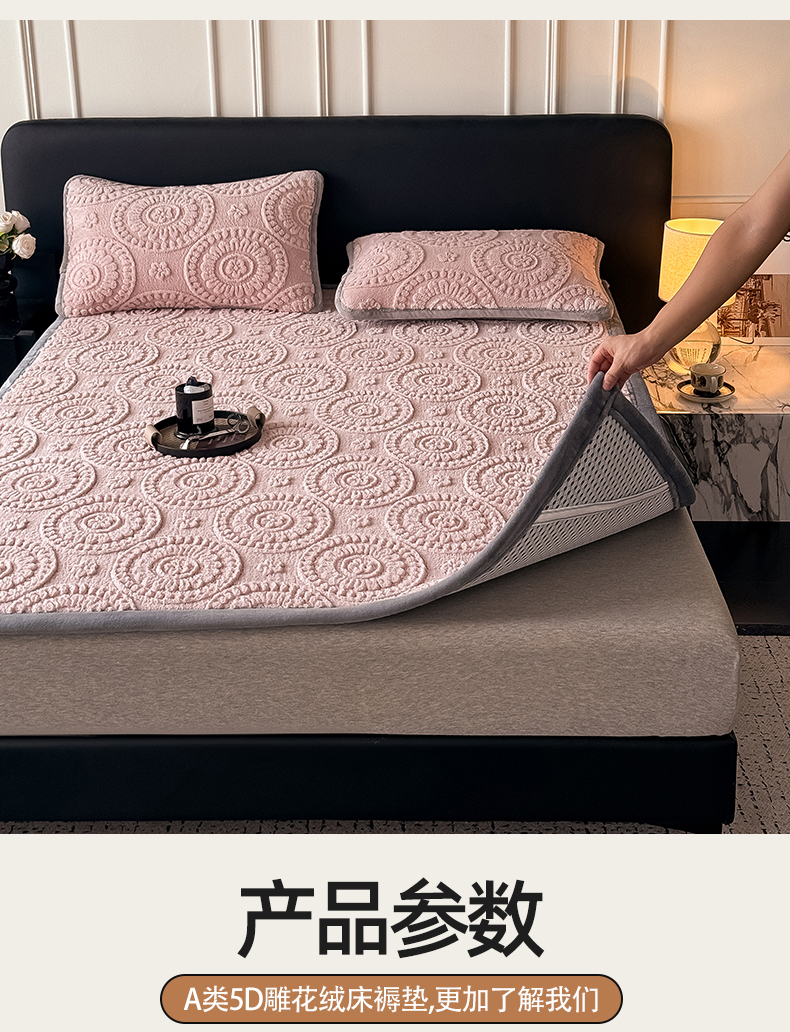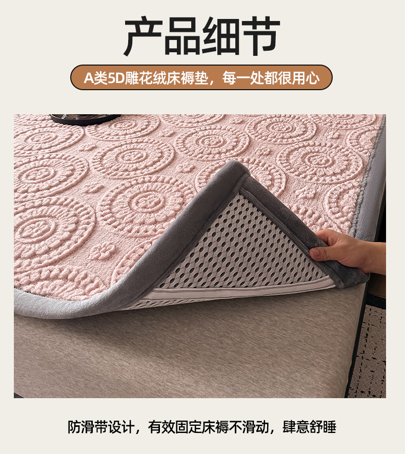 商品名称:鑫姿席业 2025新款5D雕花绒床褥垫床垫 饼干花-粉