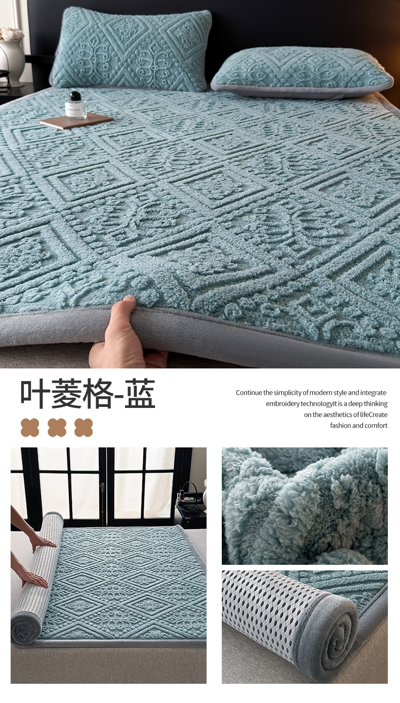 (总)鑫姿席业 2025新款5D雕花绒床褥垫床垫,饼干花-白,饼干花-粉,饼干花-灰,饼干花-卡其,饼干花-兰,饼干花-绿,叶菱格-白,叶菱格-咖,叶菱格-蓝,叶菱格-绿