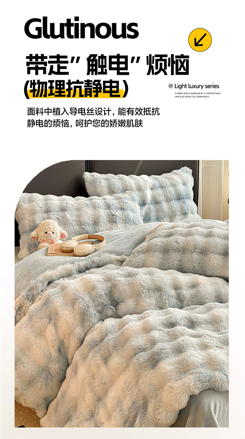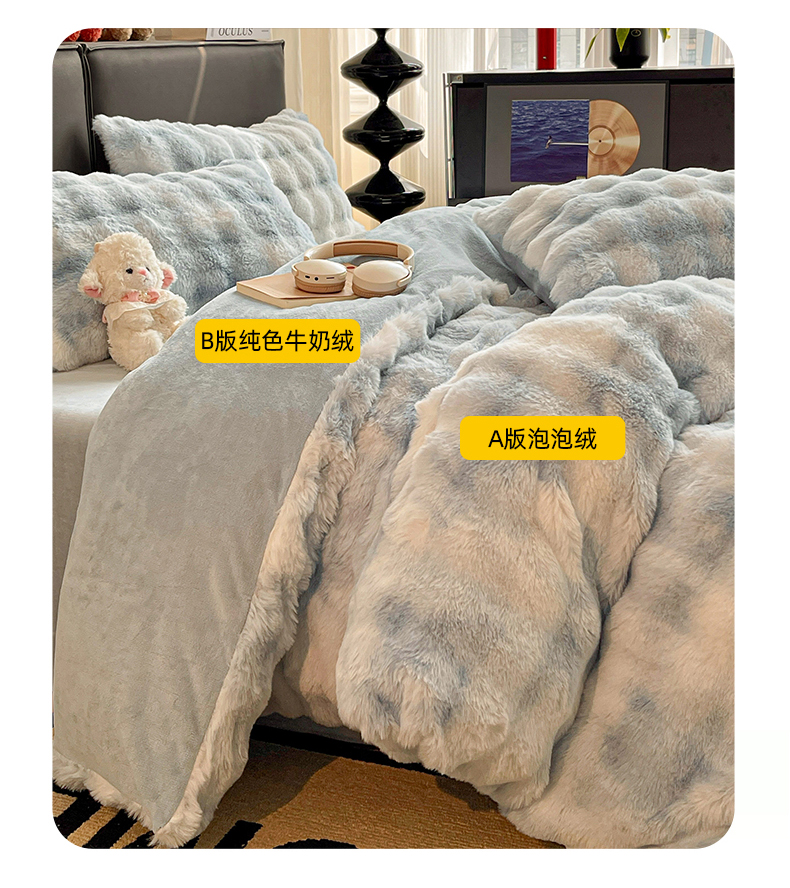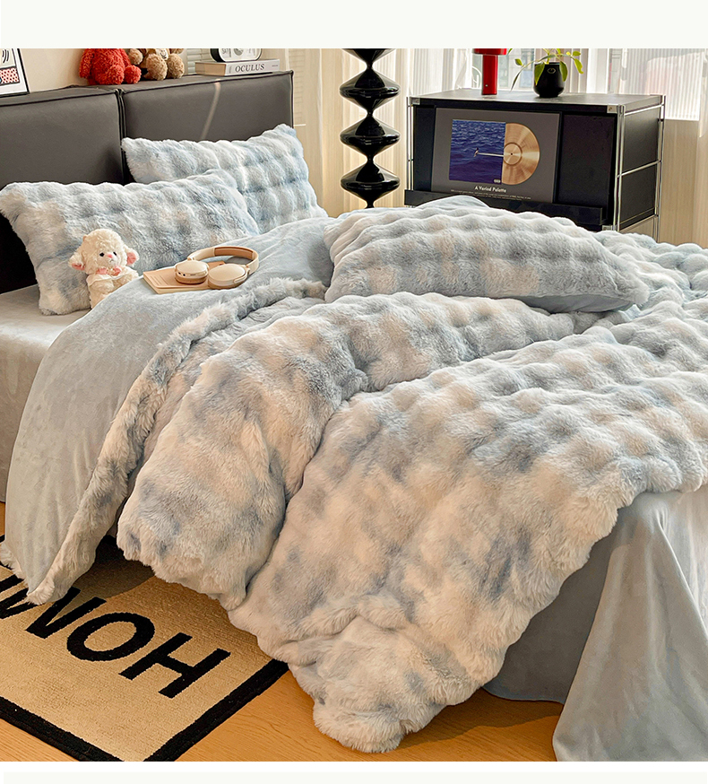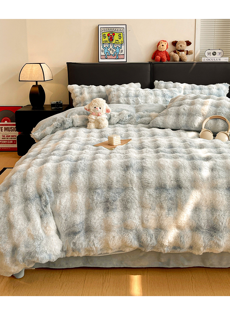 商品名称:凯洛奇 2025新款兔毛绒四件套牛奶绒四件套大泡泡兔毛四件套 迷雾幻境-蓝