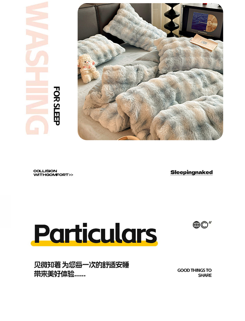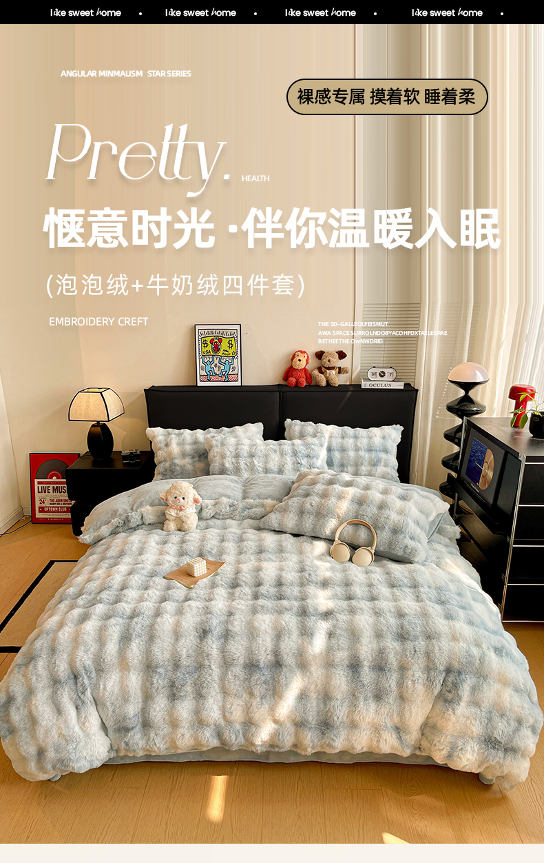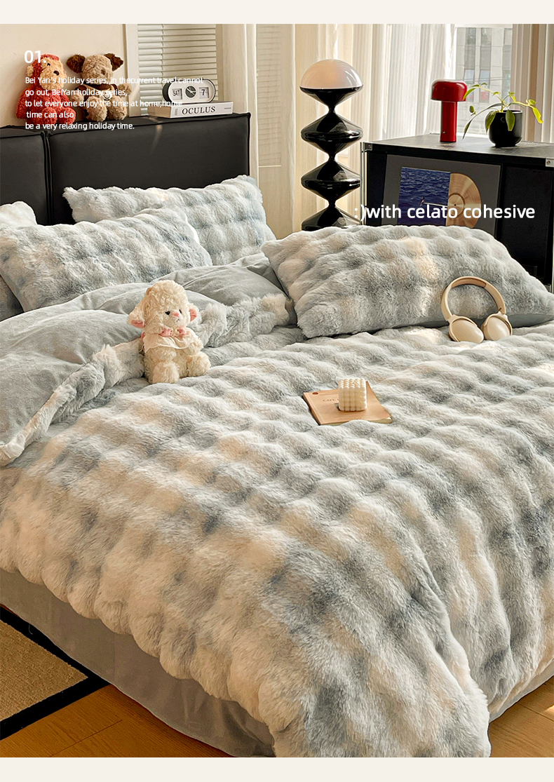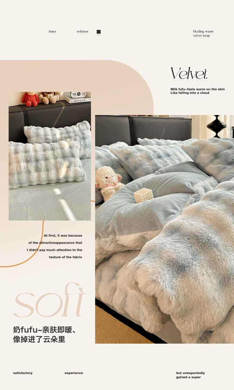 商品名称:凯洛奇 2025新款兔毛绒四件套牛奶绒四件套大泡泡兔毛四件套 迷雾幻境-蓝