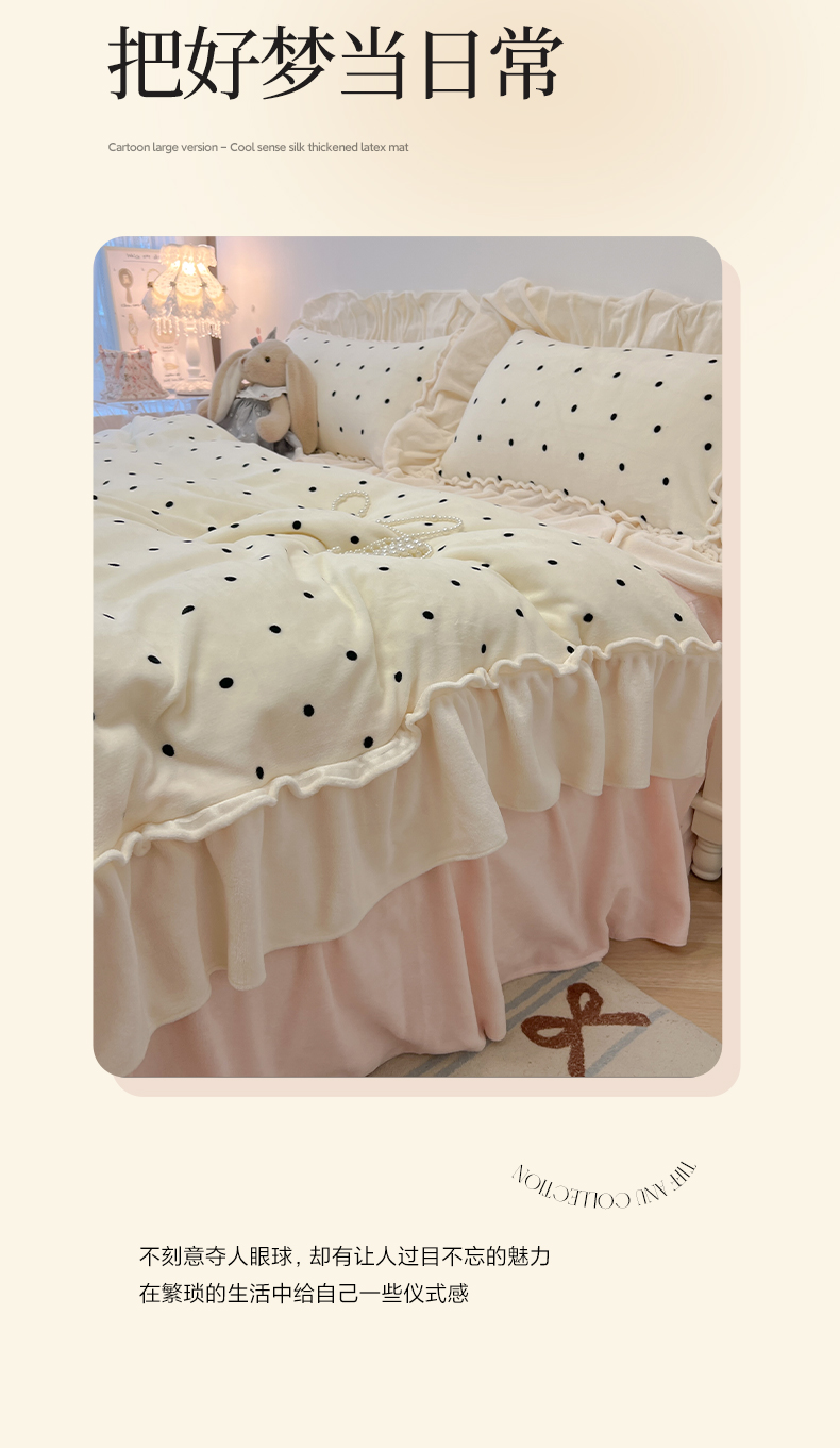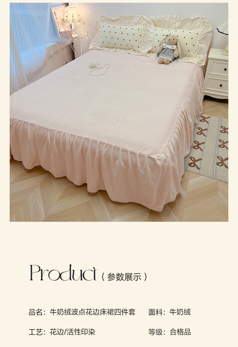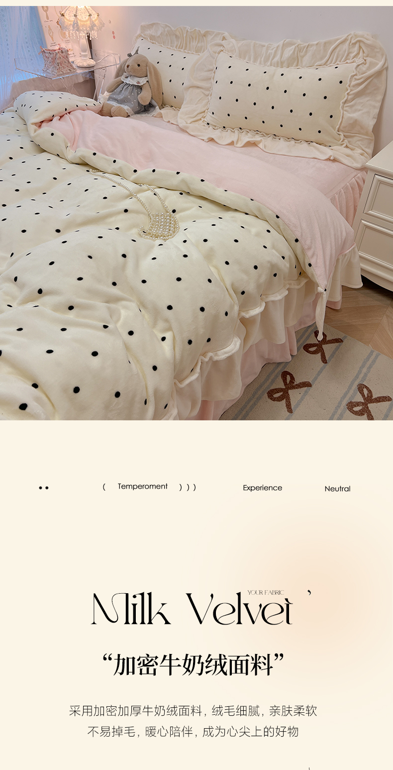 当前位置: 91家纺网 > 商品网购 > 床品套件 > 四件套 > 牛奶绒四件套 > 盼季家纺 2025新款日系奶油风牛奶绒花边床上用品四件套珊瑚绒牛奶绒床单被套床裙 牛奶绒花边-粉白波波