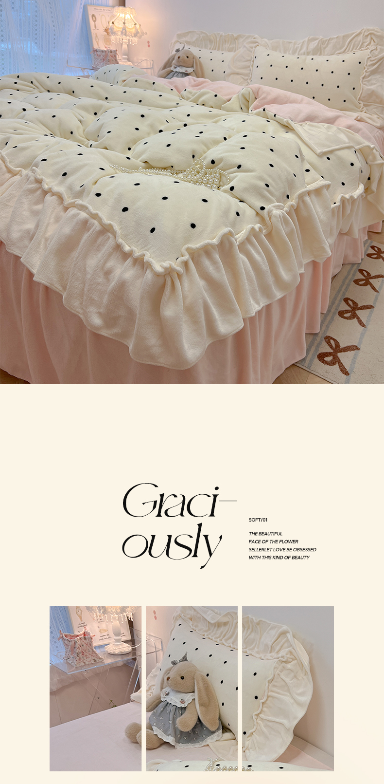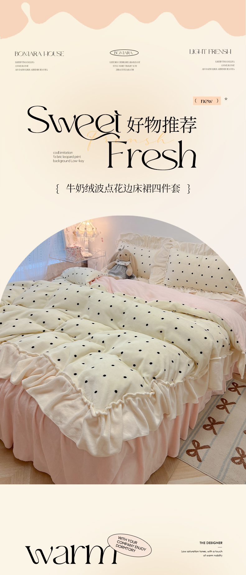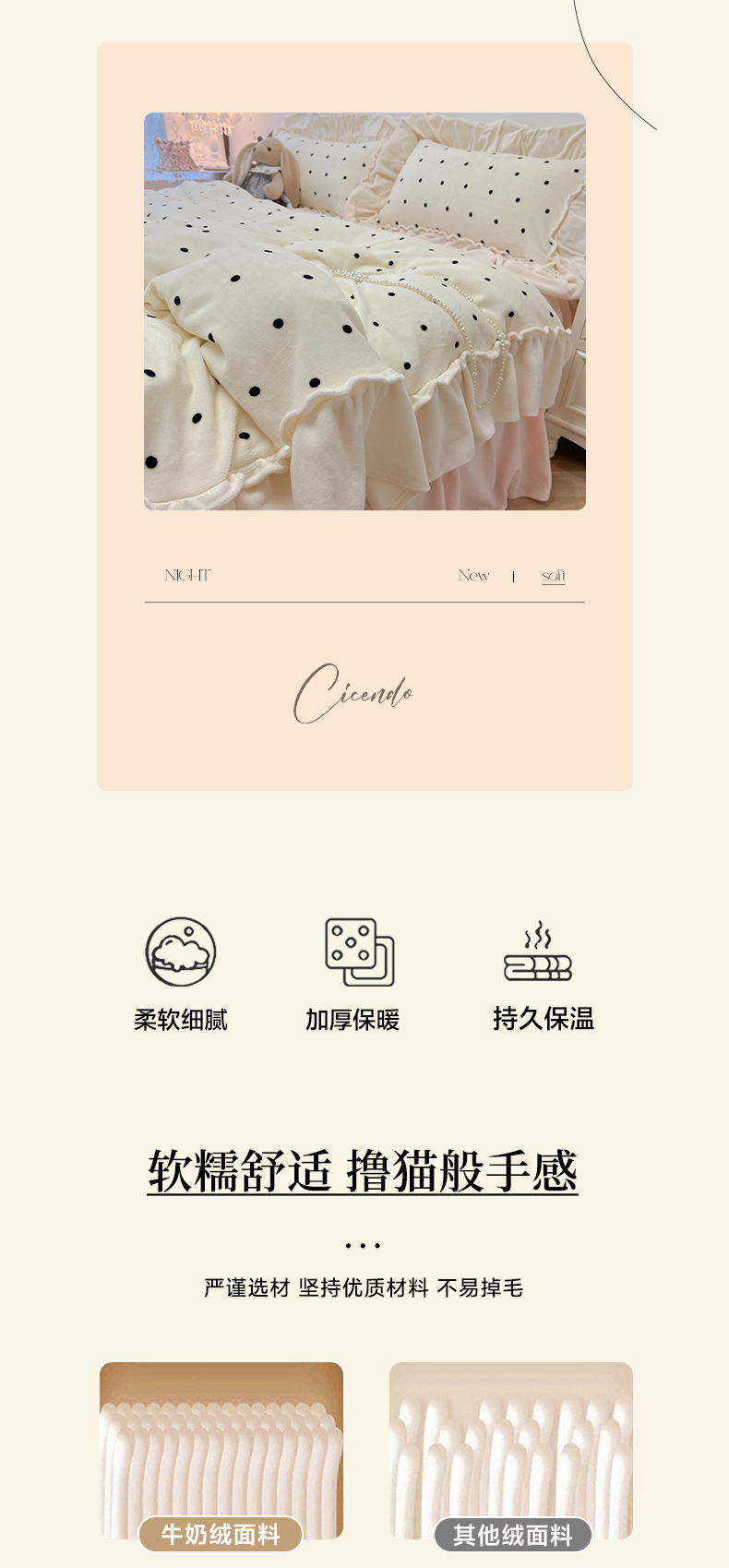 当前位置: 91家纺网 > 商品网购 > 床品套件 > 四件套 > 牛奶绒四件套 > 盼季家纺 2025新款日系奶油风牛奶绒花边床上用品四件套珊瑚绒牛奶绒床单被套床裙 牛奶绒花边-粉白波波