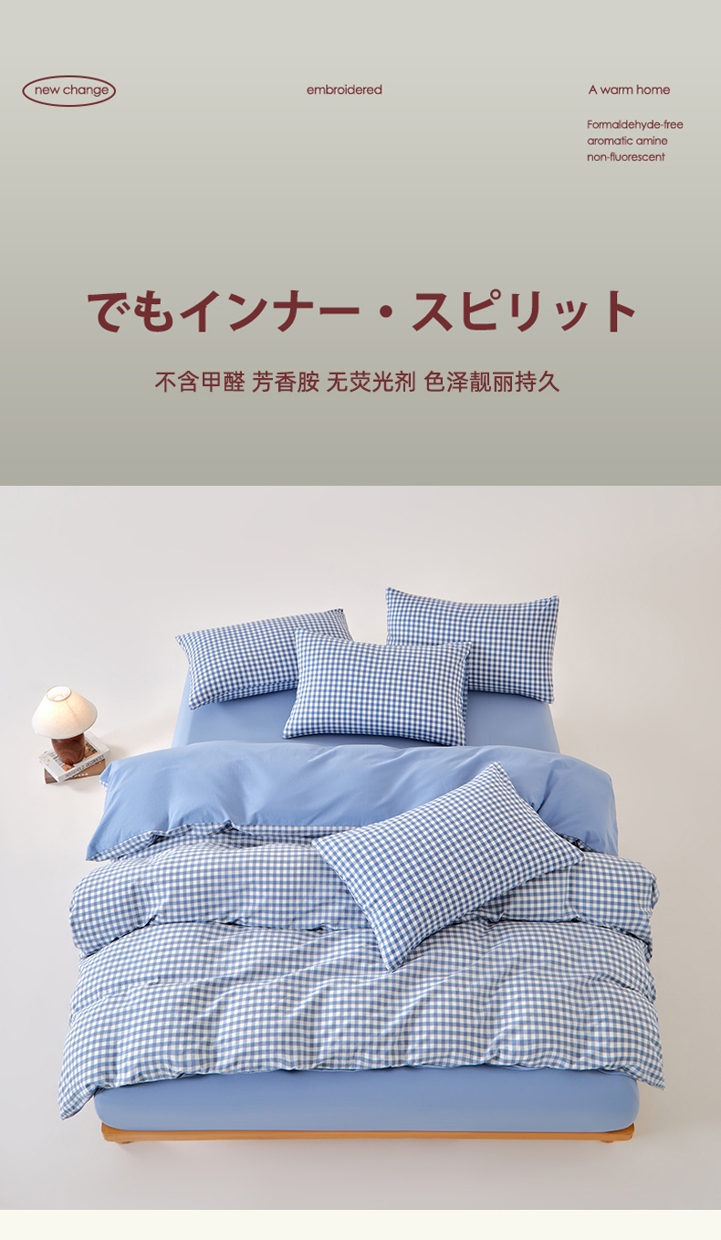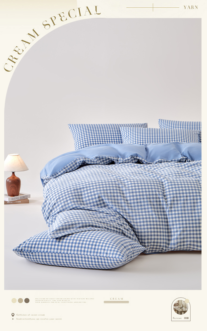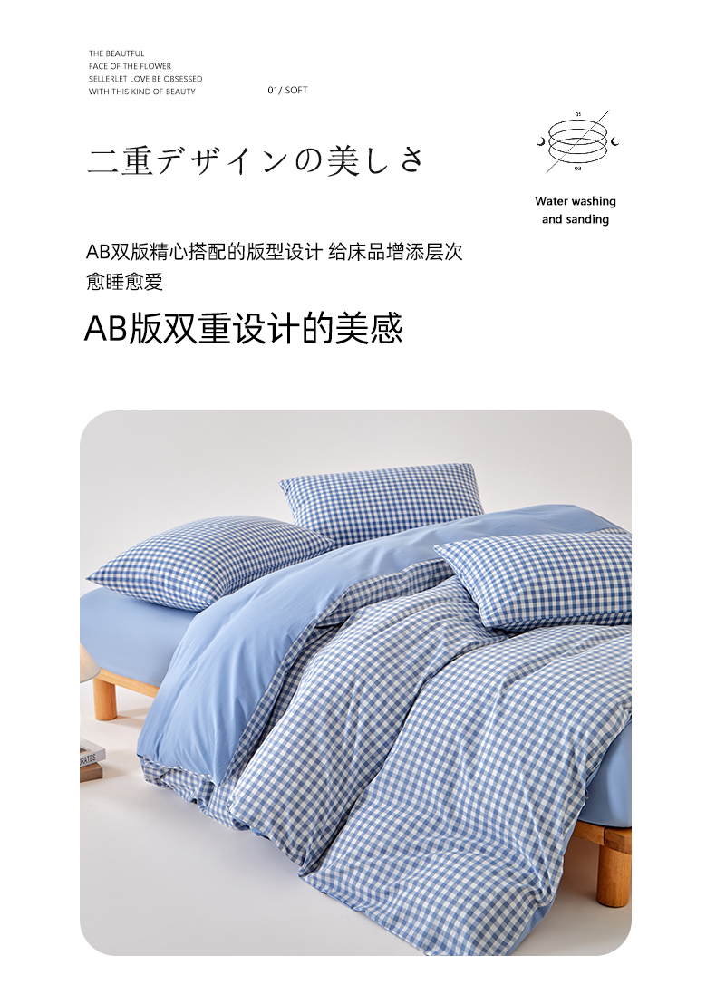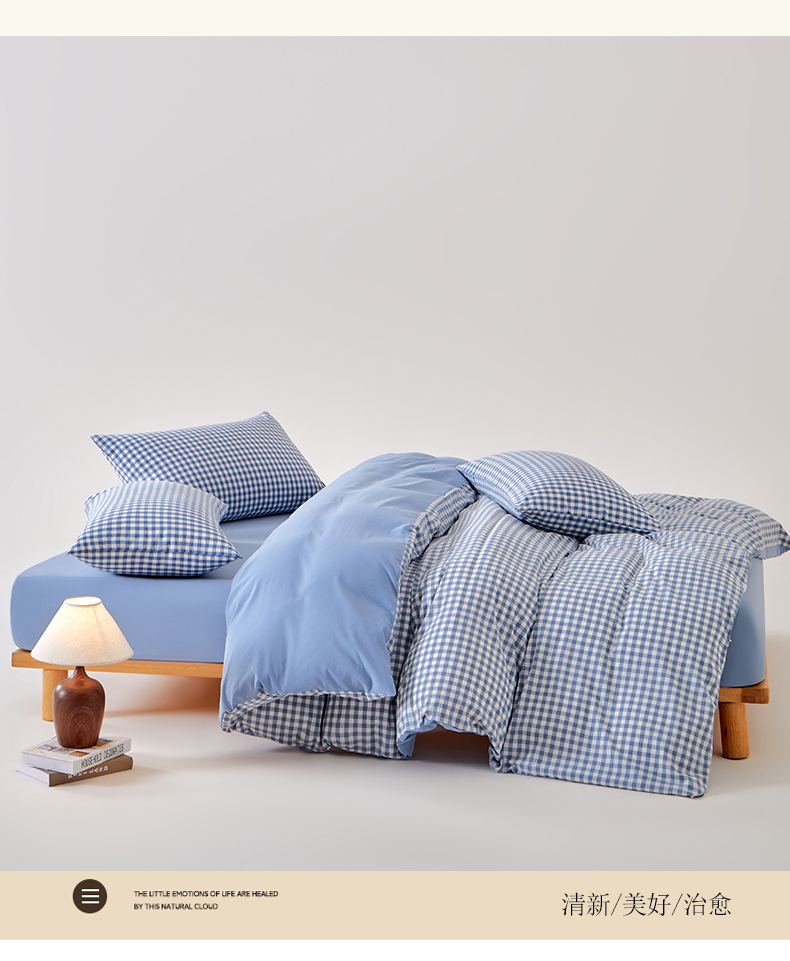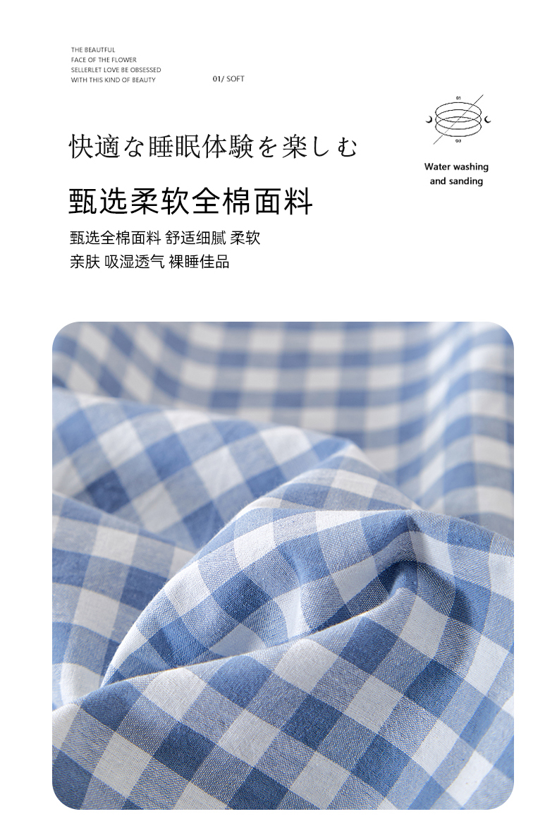 当前位置: 91家纺网 > 商品网购 > 床品套件 > 四件套 > 水洗棉四件套 > 九沐良品 2025新款全棉色织水洗棉无印风四件套 浅蓝小格