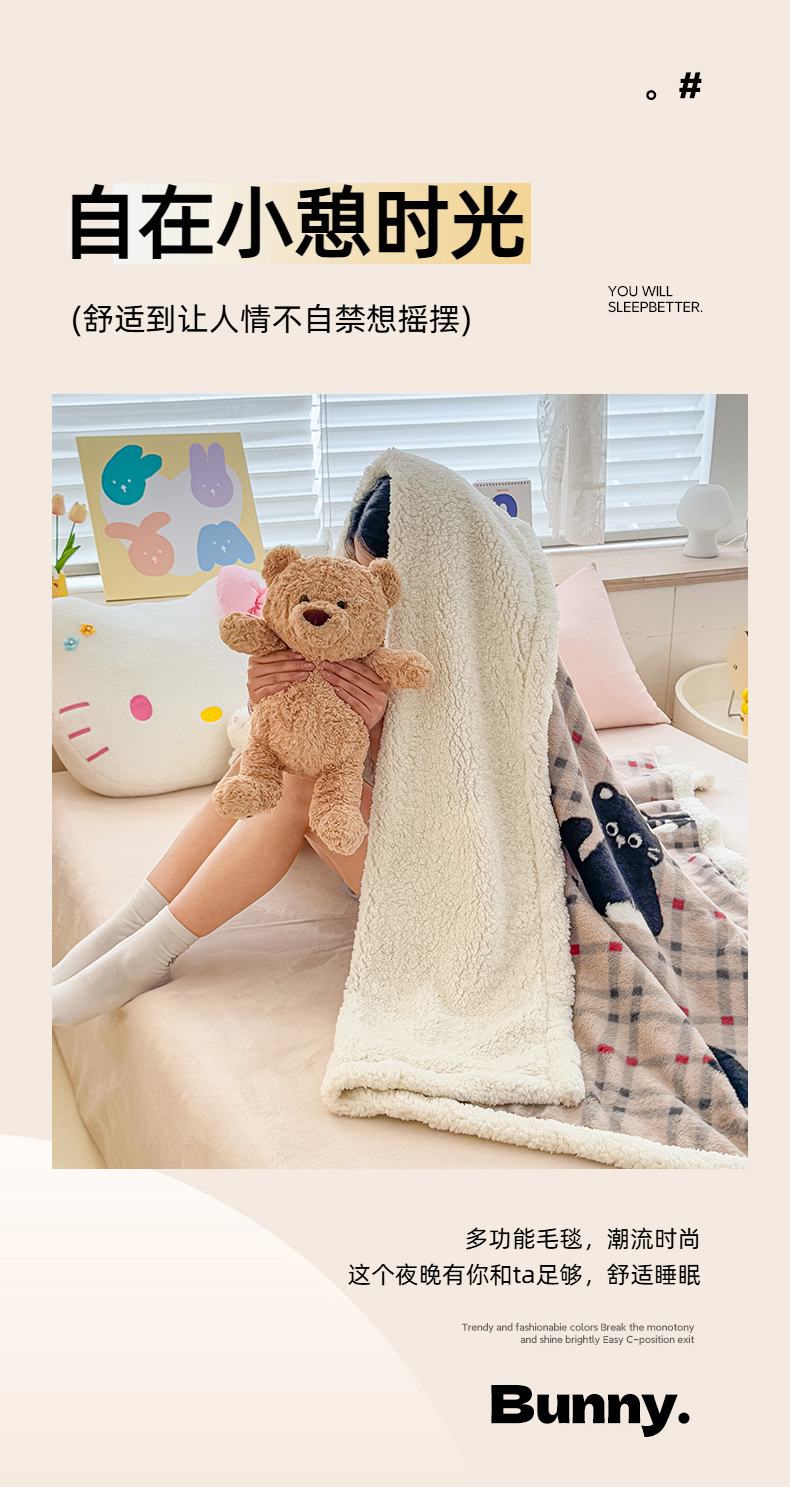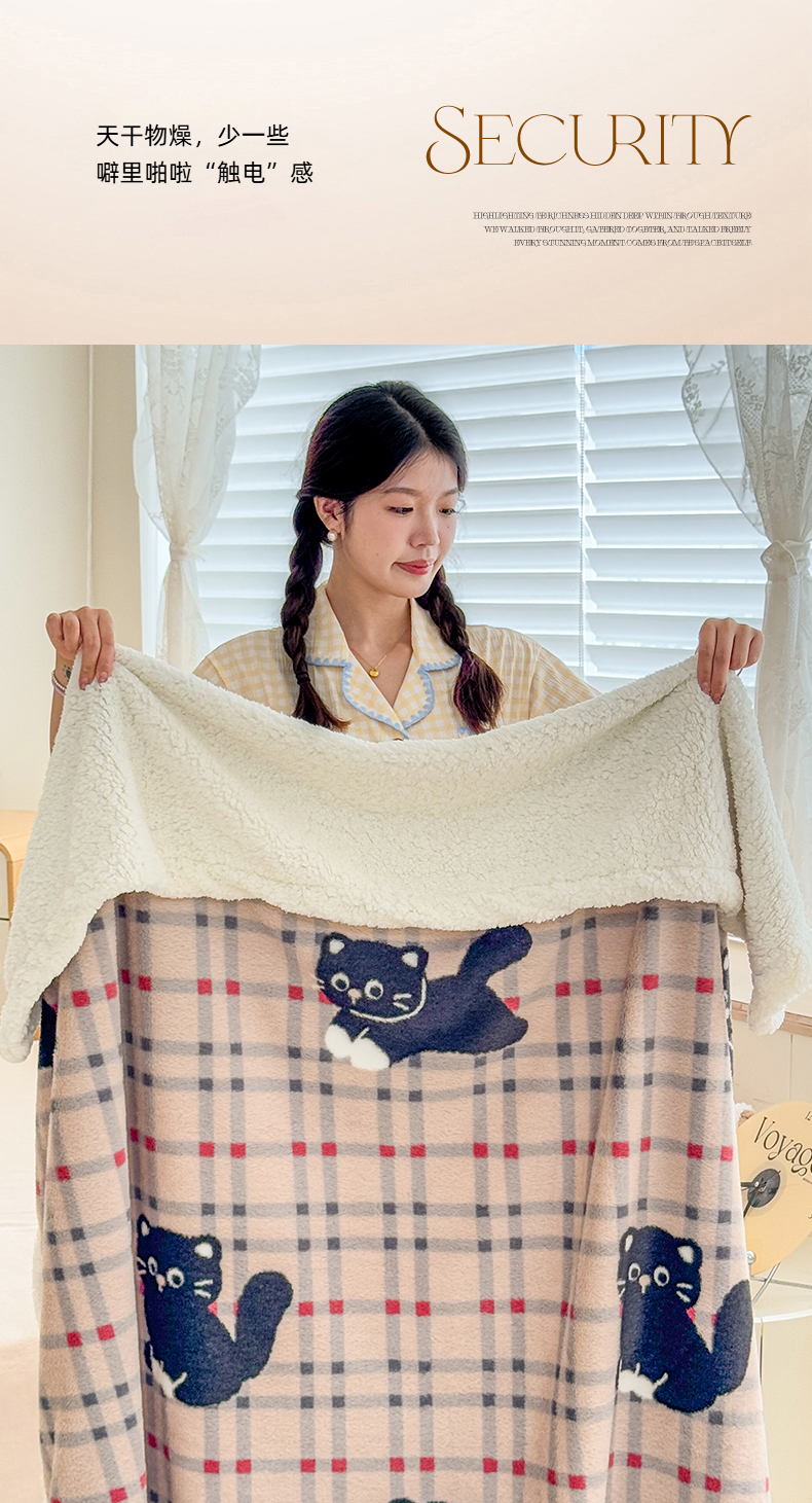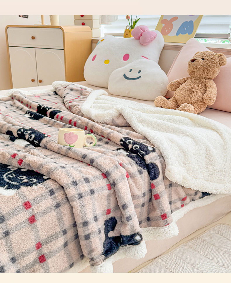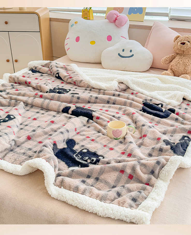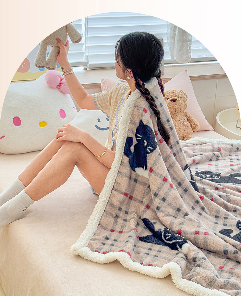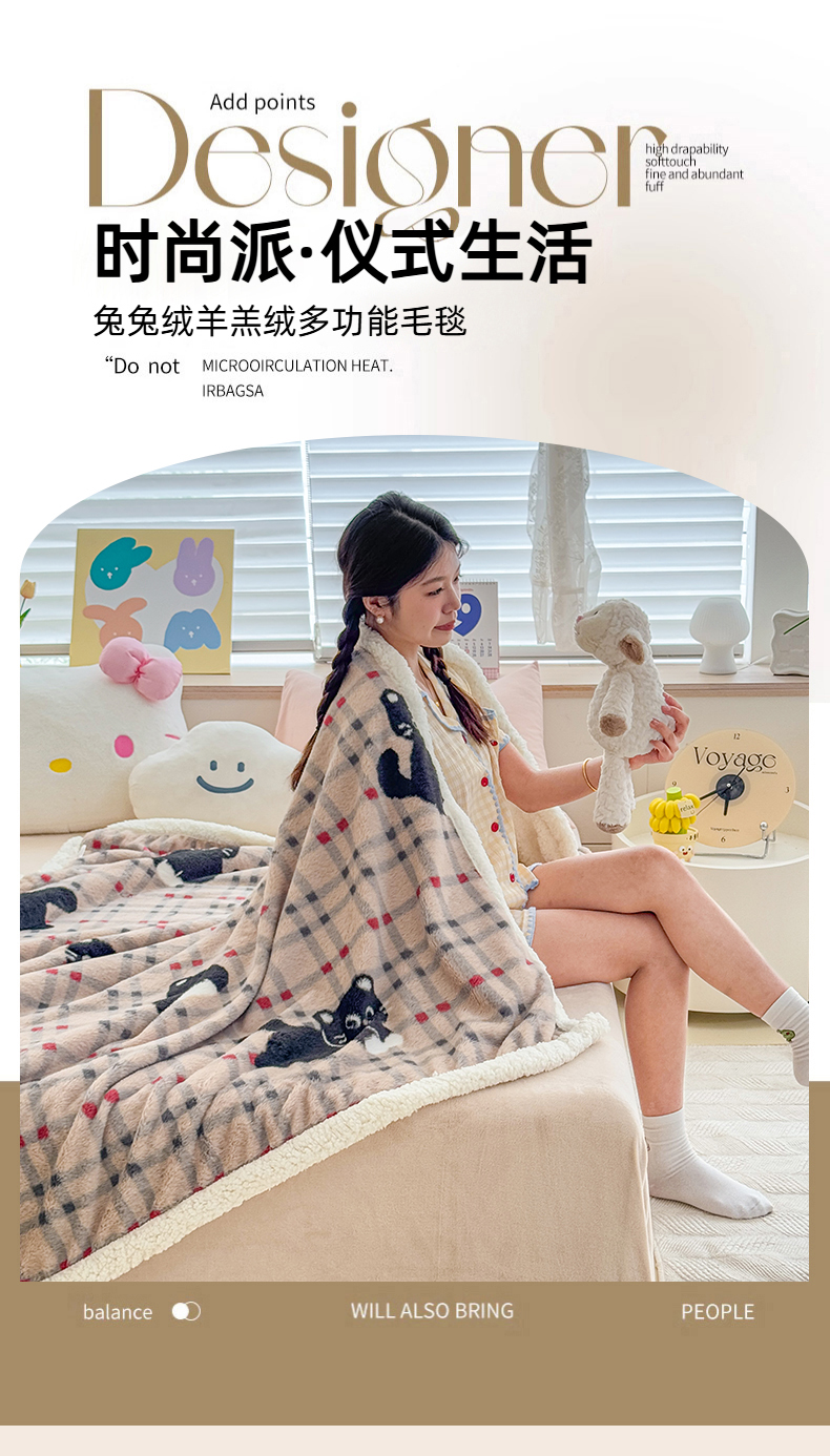商品名称:KA家纺 2025新款兔毛绒毛毯 印花牛奶绒盖毯 多功能被套毯 兔绒毯 花小猫咖