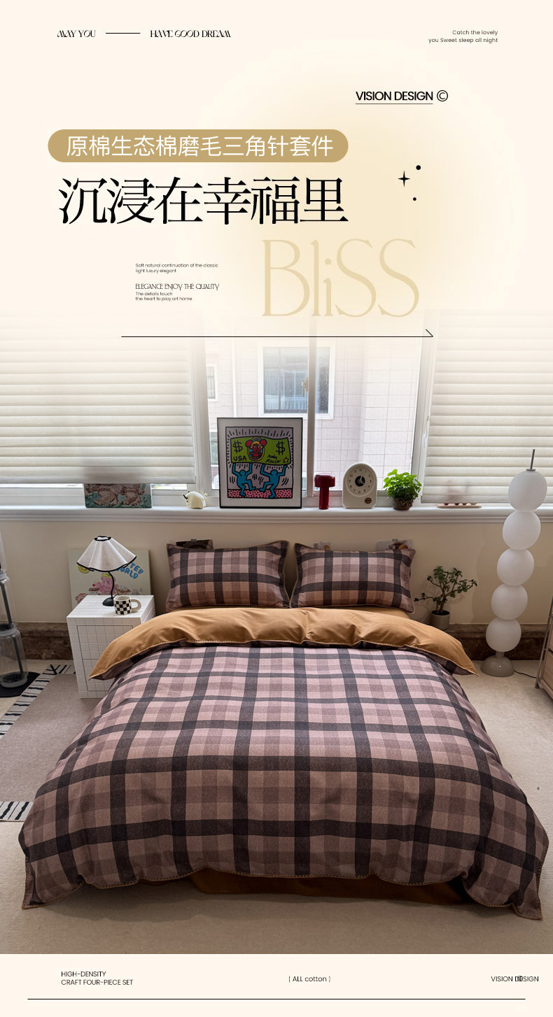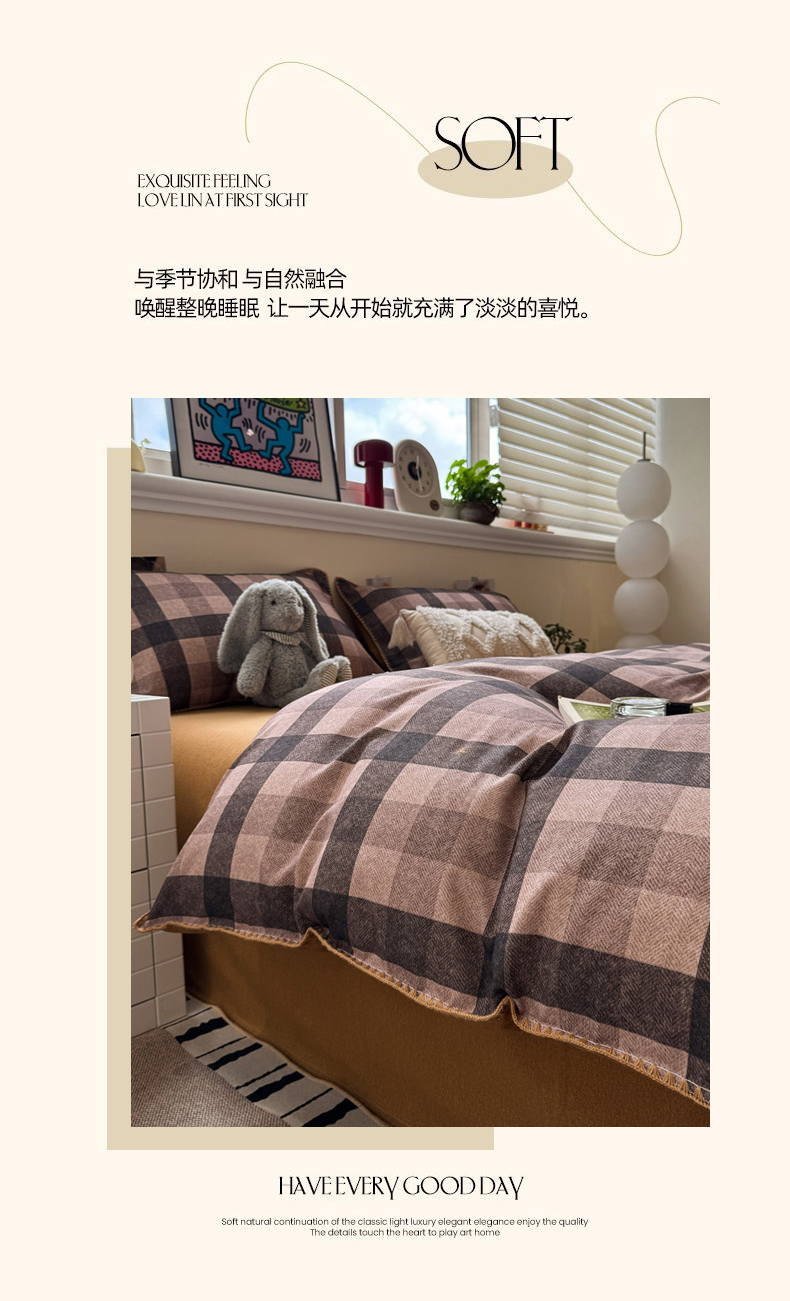 当前位置: 91家纺网 > 商品网购 > 床品套件 > 四件套 > 普通磨毛四件套 > 慕尚家纺 2025新款磨毛三角针套件四件套 磨毛三角针-英式咖黄格