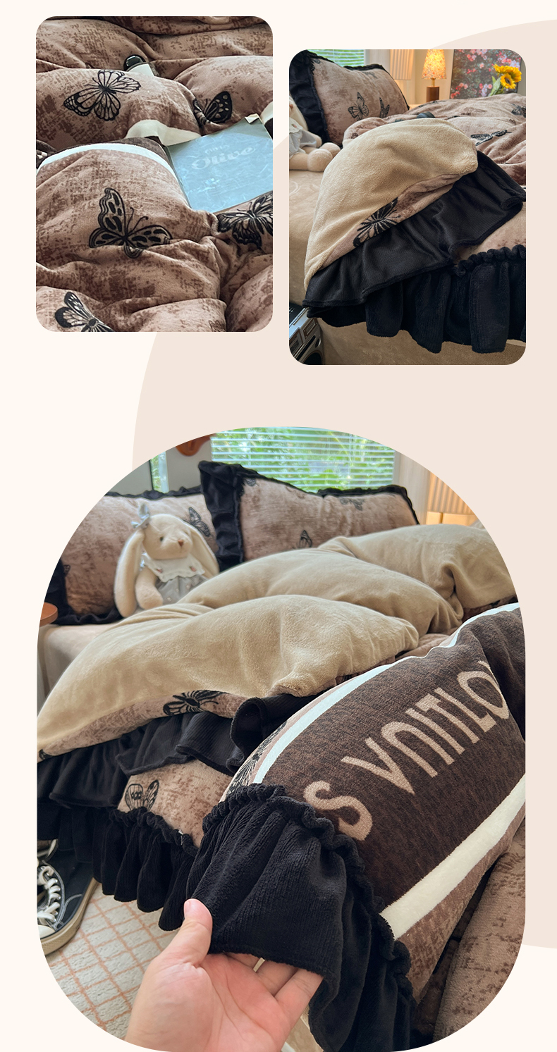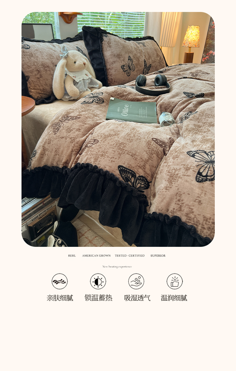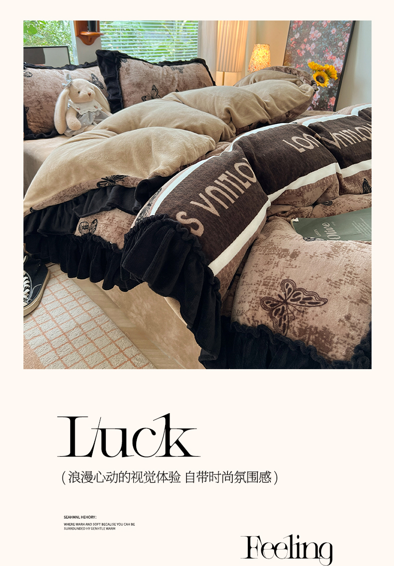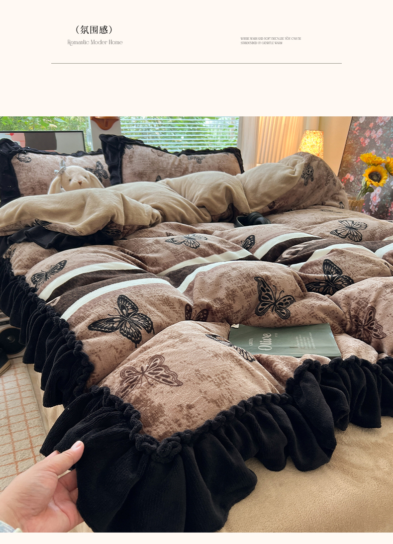 当前位置: 91家纺网 > 商品网购 > 床品套件 > 四件套 > 牛奶绒四件套 > 韩都家居 2025新款法式花边印花牛奶绒四件套 陌离